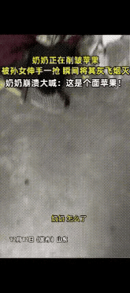 奶奶正在揭苹果皮,马上就能吃了,可就在这时,孙女把奶奶手中的苹果抢过去,用手一捏