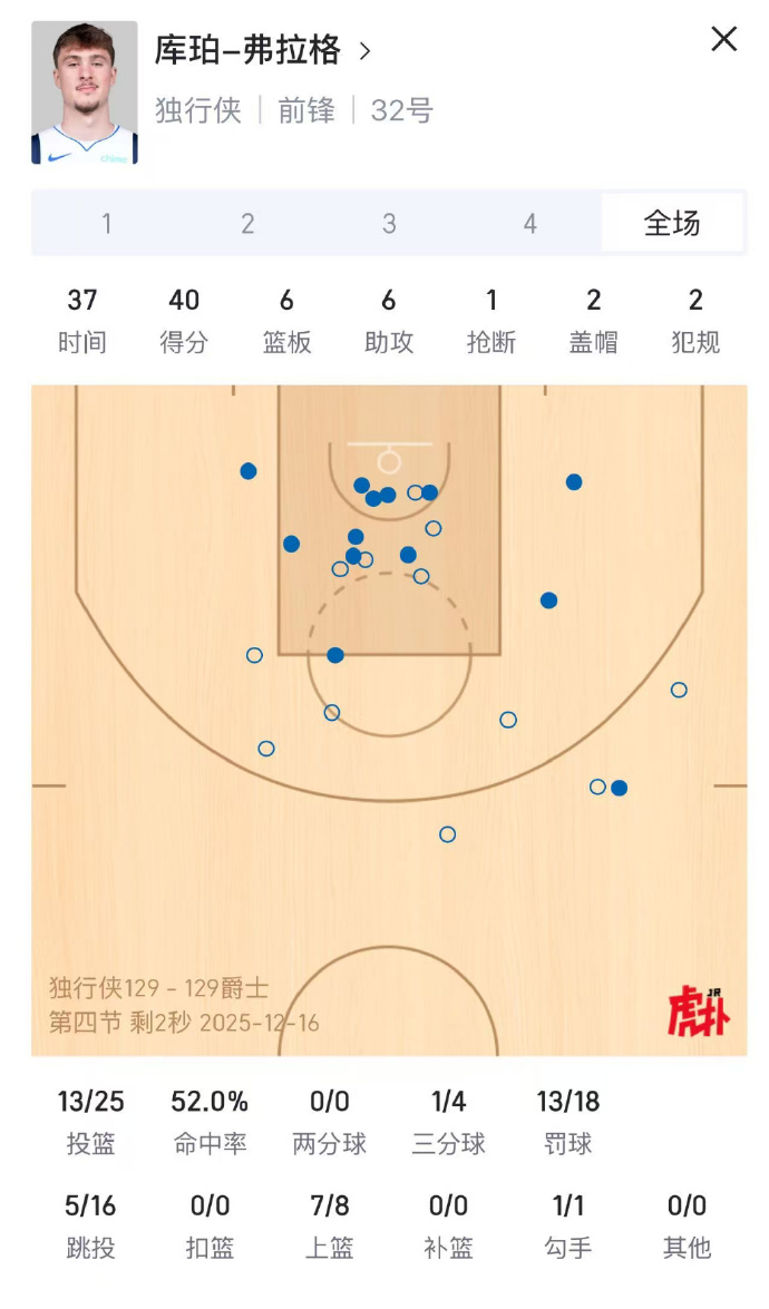 独行侠和爵士打进了加时赛,弗拉格成为历史上第一位单场得到40分的18岁球员。独行侠vs爵士