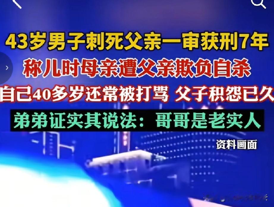 43岁的男子酒后和父亲发生争执,失误捅死了自己的父亲。男子因为故意伤害罪,被判刑7年。 说起和父亲的矛盾,男子也是一脸的委屈。明明是他盖的房子,却被父亲霸占了过去,还把他撵了出去,他想要回自己的房子,却被父亲打。 男子酒后越想越气,自己都40多岁了,还经常被父亲打。他这一辈子的苦难,也大多数来自父亲。小的时候母亲因为父亲被长期家暴,选择喝农药轻生。 后来他靠着自己的努力,找了女友,盖起了属于自己的房子,以为日子终于越来越好时,因为父亲的介入导致他和女友分手,房子也被父亲抢走。 男子觉得委屈,酒后去找父亲理论,可还说两句,又被父亲用铁掀追着打头。男子有脑梗,右手使不上劲,慌乱中拿出杀羊刀,想吓唬吓唬父亲。 他用左手拿的刀,本意就是想吓唬父亲,结果父亲还不停手。男子就用左手持刀捅向了父亲的腹部,致其死亡。 但事后因为家人都出具了谅解书,弟弟也证实哥哥是个老实人。法院以故意杀害罪判了男子7年。 有网友说,父亲明知他有脑梗,还拿铁掀拍打他的头部,他拿刀属于正当防卫,应该无罪才对。 对于这件事,你怎么看呢?