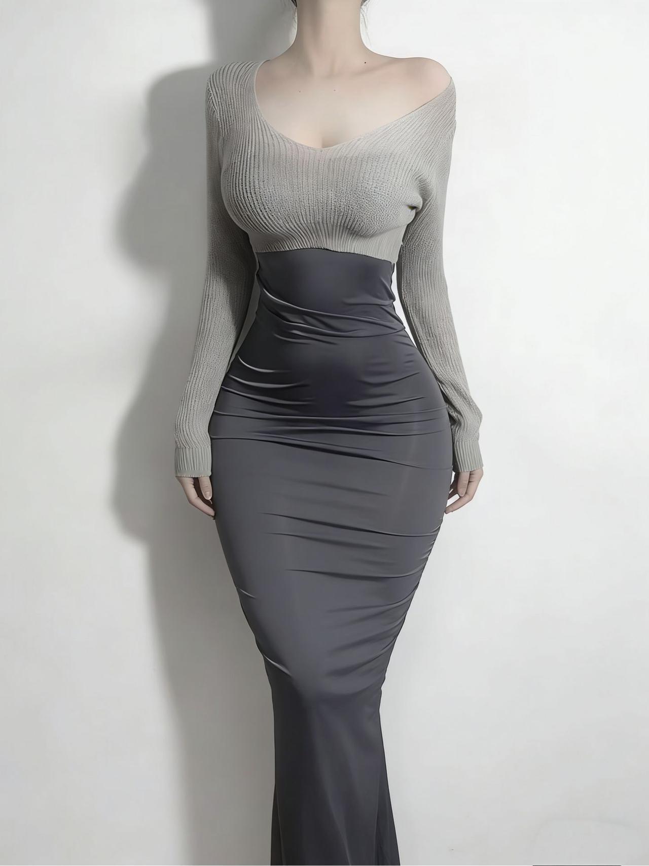 浅灰针织+深灰鱼尾裙的灰调搭配,显白又高级显白穿搭 梨形身材穿搭