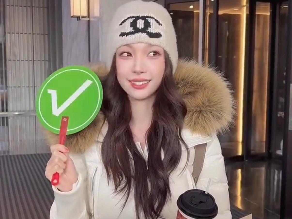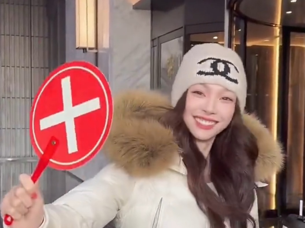 吴艳妮在成都穿着短裤大腿看起来很粗壮,表情自信又张扬