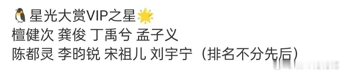 瓜🍉腾讯星光大赏vip之星,如图所示。我觉得少了两个人吧,王鹤棣和赵露思今年拉