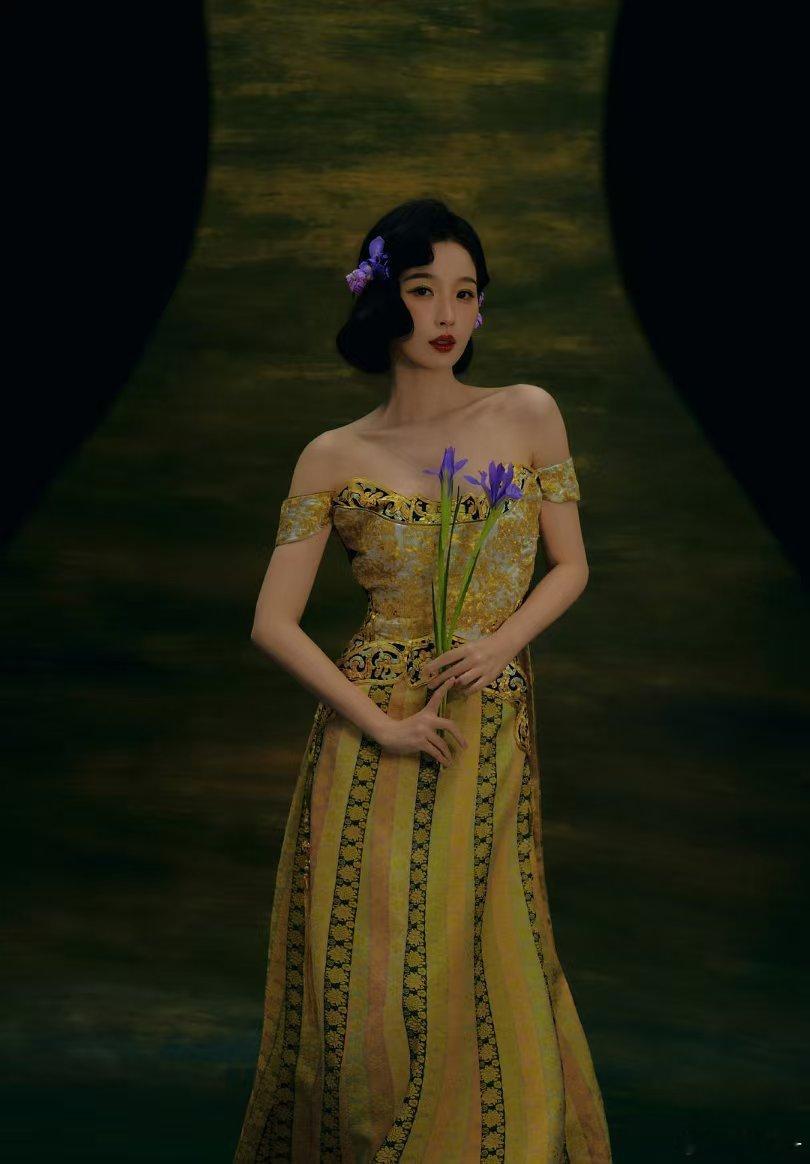 虞书欣簪鸢尾花虞书欣复古波浪短发 虞书欣最新造型复古波浪卷发搭配簪鸢尾花,真的很复古