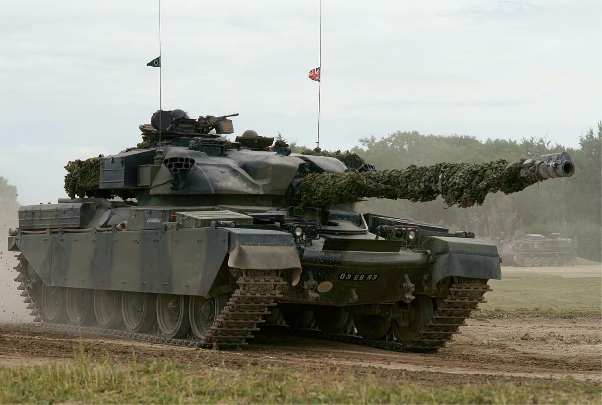 英国“酋长”主战坦克“酋长”(Chieftain)坦克是英国于20世纪50年代末研制的主战坦克,曾被英国、伊朗、伊拉克和约旦等国使用,目前仍有一部分在服役。“酋长”坦克的主要武器是1门L11A5式120毫米线膛坦克炮,这也是英国主战坦克的特色(其他国家通常都采用法国地面武器系统公司或德国莱茵金属公司的滑膛炮)。该炮采用垂直滑动炮闩,炮管上装有抽气装置和热护套,炮口上装有校正装置。火炮借助炮耳轴弹性地装在炮塔耳轴孔内,这种安装方式可减少由于射击撞击而使坦克损坏的可能性。该炮射速较高,第一分钟可发射8~10发弹,以后射速为6发/分钟。“酋长”坦克的车体装甲厚度为80~90毫米,炮塔正面装甲厚度则为150毫米。炮塔正面有大角度的倾斜造型,避弹能力颇佳,此外整体车高也比较低矮,生存性优于美国M60坦克。|
