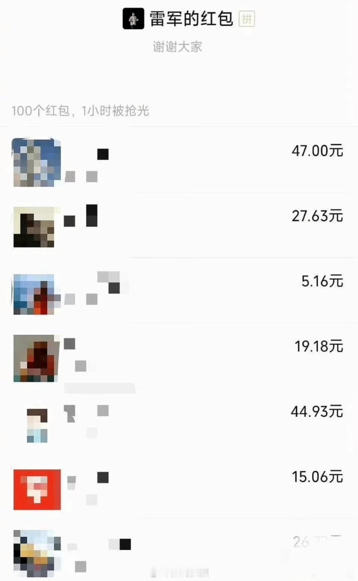 今天,雷军生日,群里发了100个红包,这是发了多少钱?