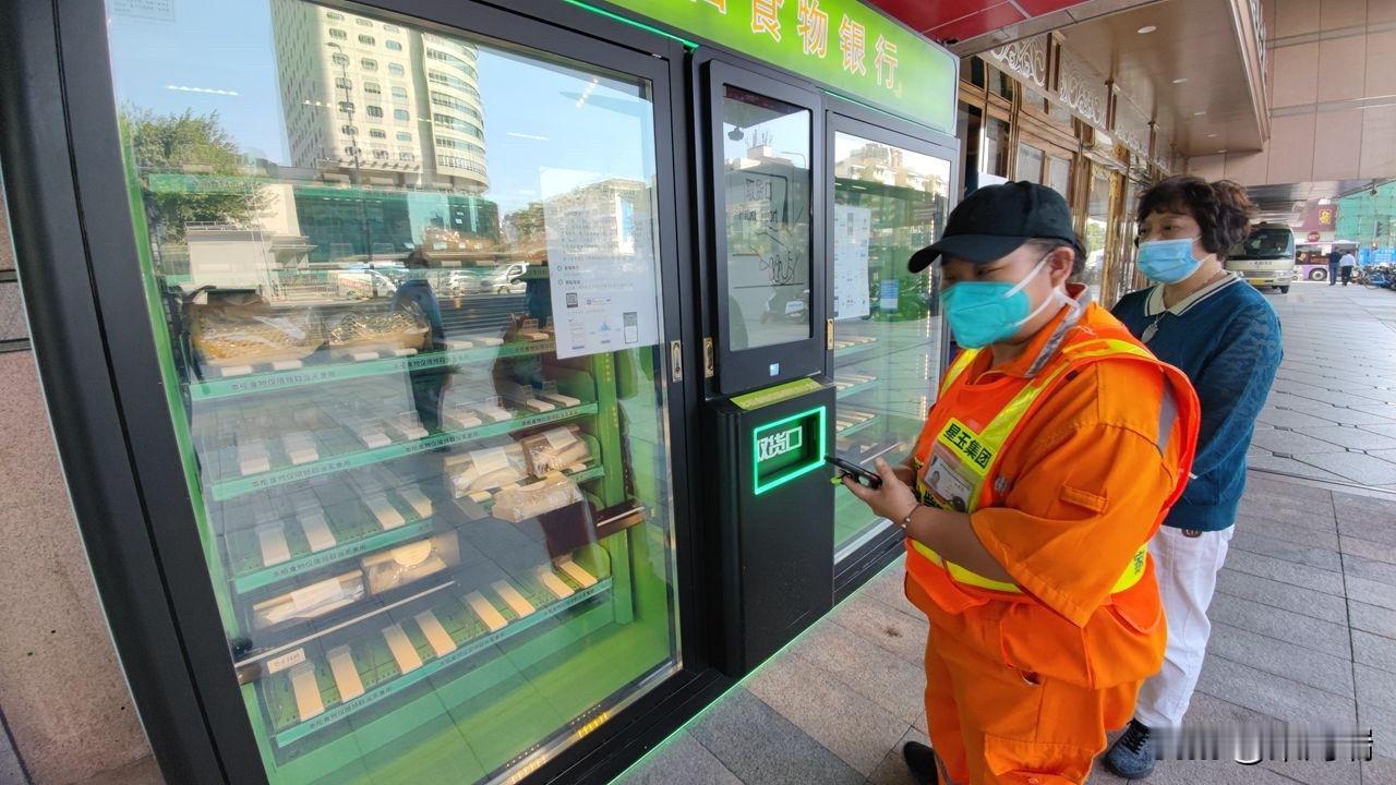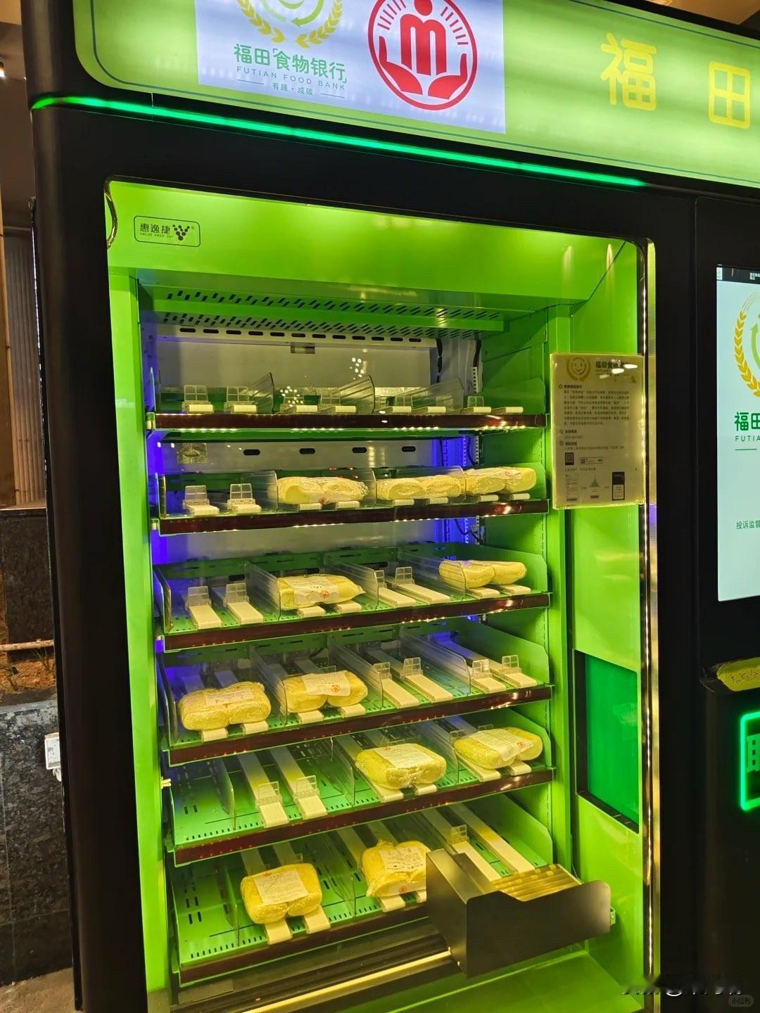 一种特殊的银行——“24小时食物银行”——出现在深圳街头。 这个机器是福田食物银行(FUTIAN FOOD BANK)的智能领取柜。它是一项旨在减少食物浪费、帮助有需要居民的公益项目。 这些特制的冷藏柜里全部存放着附近超市和面包店捐赠的临近保质期的食品。所有食品都免费提供给有需要的人,在提供即时帮助的同时,也减少了食物浪费。 每日开门至晚上8点,优先为低收入家庭、残疾人士、贫困儿童、失去独生子女的老人以及户外工作者等群体提供物资。晚上8点后,剩余物资将向所有深圳居民开放。 为确保新鲜和安全,所有食品均在当天送达、分拣和补货,每件商品都清楚地标有“今日食用”的标签。食品柜定期消毒,志愿者逐件检查,以保证质量和卫生。 组织方:由深圳市福田区民政局联合食品经营企业发起。 目的:解决临期或剩余食物被动垃圾化的问题,免费提供给有需要的居民。 服务对象:主要面向低保、残疾人等特殊群体,并通过“白名单”管理和线上预约进行精准投放。 运作方式:居民可以通过“i深圳”等手机应用程序预约食物,然后在指定的智能柜机(例如图片中的机器)24小时自助领取。 食物类型:包括肉类、蔬菜、水果、面包和饮料等,均经过食品安全检查。