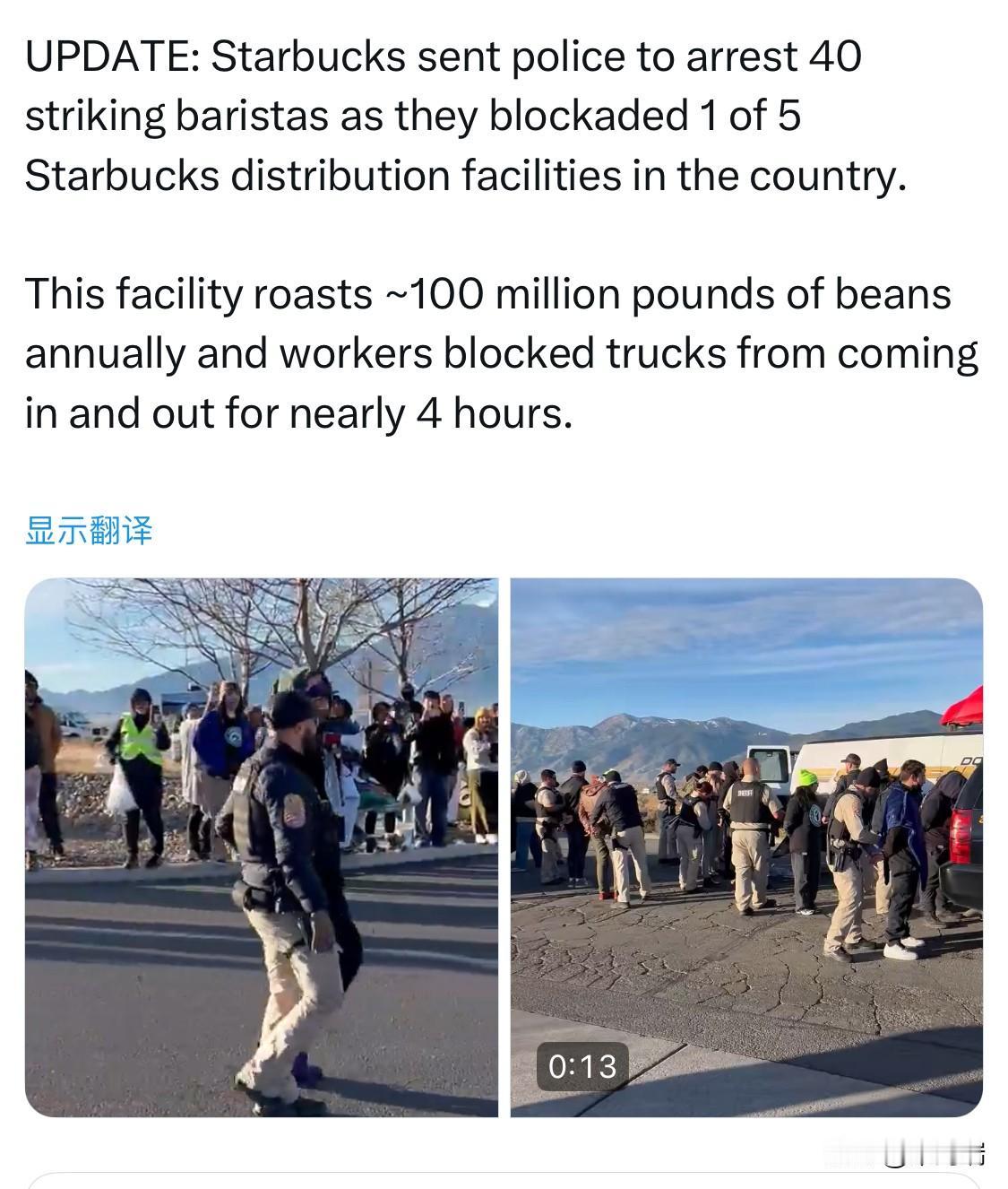 突发:星巴克咖啡师罢工已持续三个多小时,封锁了星巴克在内华达州明登市一家主要的配送和烘焙工厂。内华达州明登市气温28华氏度(约零下2摄氏度),警方似乎已做好逮捕准备,但咖啡师们并未因此退缩。 最新进展:星巴克派警察逮捕了40名罢工咖啡师,他们封锁了星巴克在该国的5个配送中心之一。 这家工厂每年烘焙约 1 亿磅咖啡豆,工人们封锁了卡车进出通道近 4 个小时。 星巴克在内华达州明登市的这家咖啡烘焙工厂,主要负责大宗的咖啡豆加工和分销,是其全球供应链的关键一环。 工厂地点: 2525 Starbucks Way, Minden, NV 89423。 功能定位: 它是一个工业制造与分销中心,与星巴克在西雅图、上海等地的“臻选烘焙工坊”(Starbucks Reserve Roastery)的概念不同。后者更侧重于零售体验和展示,而明登工厂是高效能的生产设施。 运营: 该工厂是星巴克在美国主要的制造和分销网络之一,确保产品能及时送达各地的门店和销售渠道。 非零售店: 该地址并非供公众参观或消费的咖啡店,而是一个工业运营场所。明登市另有一家常规的星巴克零售店(地址:1734 U.S. Hwy 395 N, Minden, NV 89423)。 为了应对成本上升的压力,星巴克在2025年曾计划调整其在美国部分烘焙和包装工厂的生产安排,但具体的长期运营细节需要查阅最新公告。