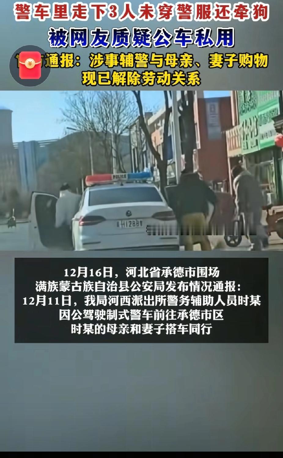 警车又成“私车”?承德 围场警方刚通报,时某就因违规用公务车“饭碗不保”!连张书面警告都没给,直接被单位解除了劳动合同,这处理速度和力度,让不少网友直接炸开了锅。 支持者觉得“公器私用就该零容忍,早该用这么硬的手段了”,但也有网友嘀咕“是不是还有别的情况?平时不都是先警告再处理吗?” 具体违规细节暂时还没完全公布,但现在大家对公车管理确实抓得越来越严了。那你觉得,直接开除是小题大做,还是就该这样“下猛药”?来评论区聊聊你的看法!(配图:警车停放示意图)