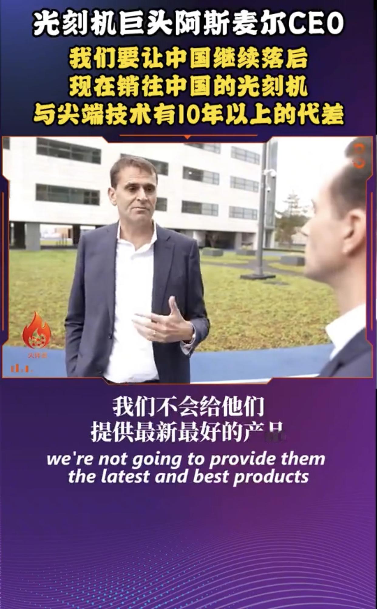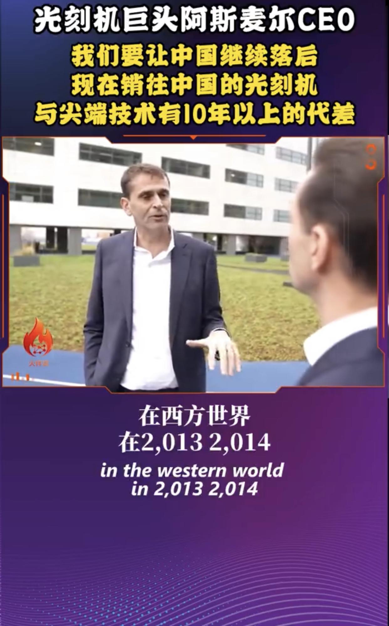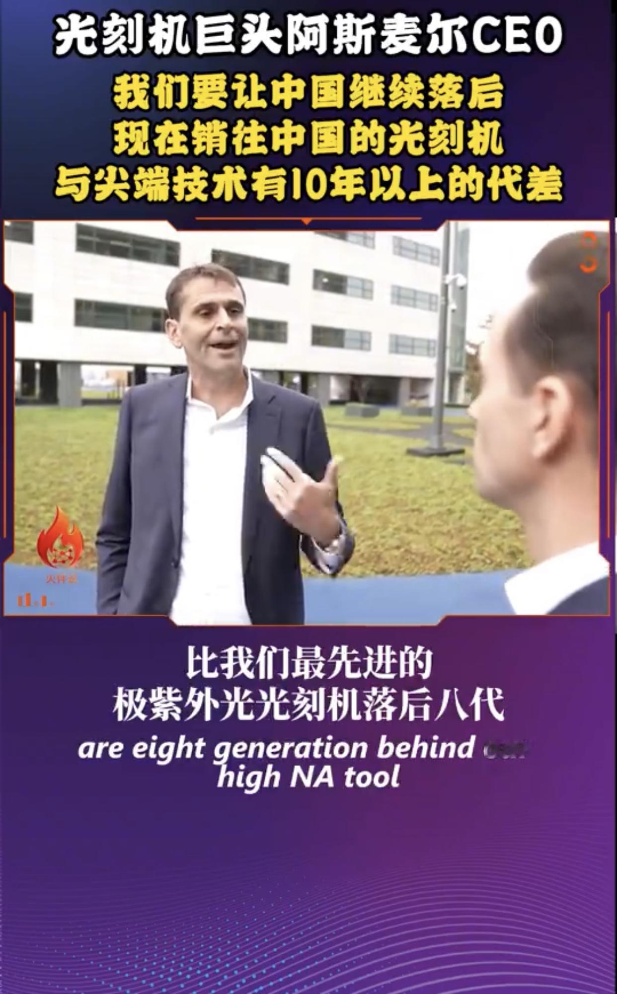 荷兰光刻机巨头阿斯麦尔在接受媒体采访时表示,阿斯麦尔卖给中国的光刻机都是落后了好几代的产品,这样阿斯麦尔既能做生意赚钱,又能阻止中国在光刻机技术上的快速进步,使中国在光刻机技术上永远落后于西方国家并对西方国家形成长久依赖。 他强调:“中国不会接受被先进技术拒之门外,如果你有14亿人口,你肯定想要进步,所以这是现实,我认为西方可能会选择继续让中国落后,他们会说,我们不会给他们提供最新最好的产品,但你知道,我们可以提供第三代、第四代、甚至第五代产品,今天我们运到中国的产品比我们最先进的极紫外光光刻机落后八代,我们之前谈过了,我们运到中国的产品比我们本身的技术要落后得多,我们现在往中国销售的产品,在西方世界是2013、2014年的,所以代差超过10年,中国当然也因此受到影响,他们的技术进步速度已经放缓,问题是这种情况还能够持续多久,我们还要继续让他们落后5年、10年、15年吗?这并非我能决定的,还是我们继续限制他们,以至于他们别无选择,只能停止依赖西方技术,对我们来说,这意味着从长远来看,这部分生意就没了,他们开发自己的产品,而且在很多方面都做到了,在未来某些时候,他们甚至可以把他们的产品反过来销售给我们,所以我想,现在最重要的是找到一个合适的平衡点,既要考虑到限制他们的技术进步,也要考虑由此可能产生的后果,我认为正确的问题应该是我们希望中国落后多少?”