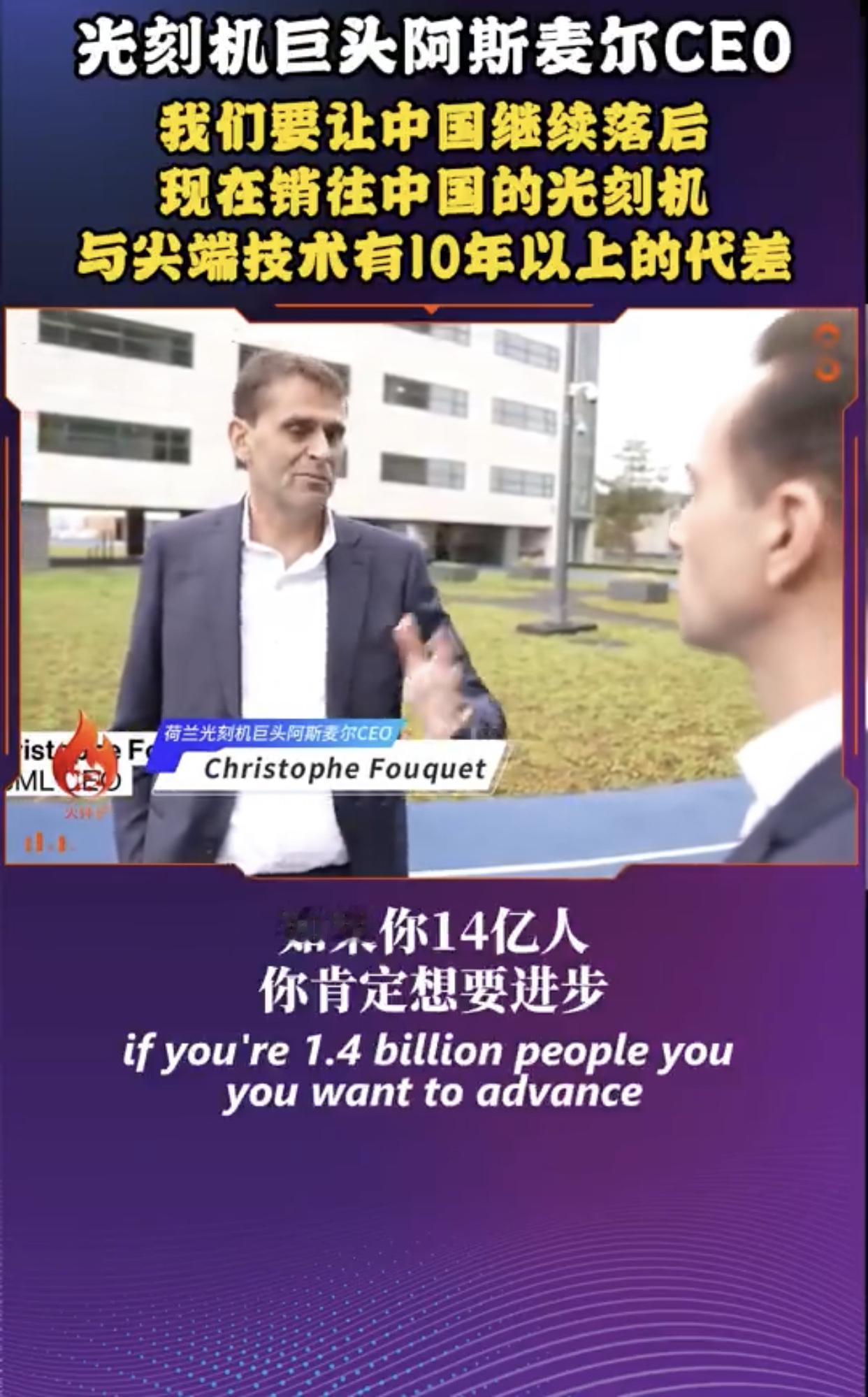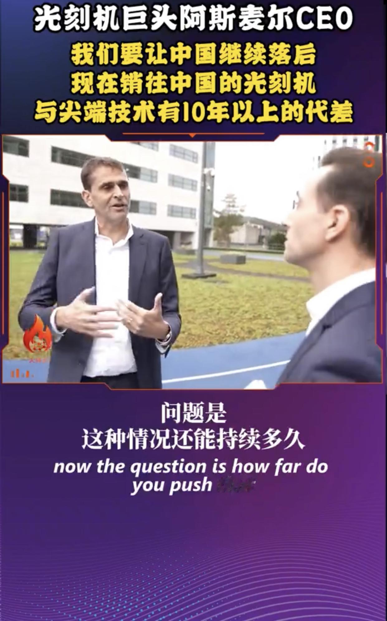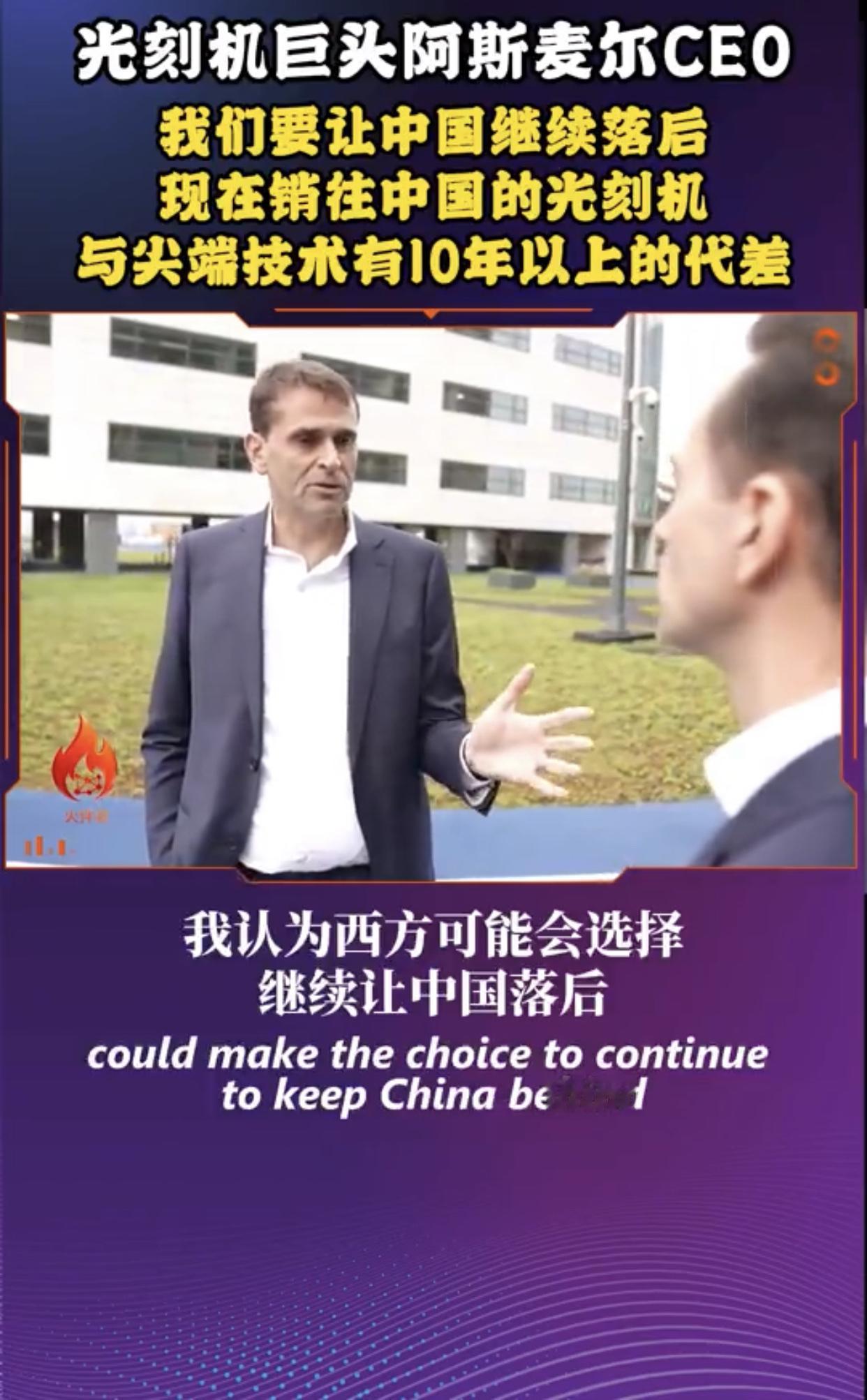 荷兰光刻机巨头阿斯麦尔在接受媒体采访时表示,阿斯麦尔卖给中国的光刻机都是落后了好几代的产品,这样阿斯麦尔既能做生意赚钱,又能阻止中国在光刻机技术上的快速进步,使中国在光刻机技术上永远落后于西方国家并对西方国家形成长久依赖。 他强调:“中国不会接受被先进技术拒之门外,如果你有14亿人口,你肯定想要进步,所以这是现实,我认为西方可能会选择继续让中国落后,他们会说,我们不会给他们提供最新最好的产品,但你知道,我们可以提供第三代、第四代、甚至第五代产品,今天我们运到中国的产品比我们最先进的极紫外光光刻机落后八代,我们之前谈过了,我们运到中国的产品比我们本身的技术要落后得多,我们现在往中国销售的产品,在西方世界是2013、2014年的,所以代差超过10年,中国当然也因此受到影响,他们的技术进步速度已经放缓,问题是这种情况还能够持续多久,我们还要继续让他们落后5年、10年、15年吗?这并非我能决定的,还是我们继续限制他们,以至于他们别无选择,只能停止依赖西方技术,对我们来说,这意味着从长远来看,这部分生意就没了,他们开发自己的产品,而且在很多方面都做到了,在未来某些时候,他们甚至可以把他们的产品反过来销售给我们,所以我想,现在最重要的是找到一个合适的平衡点,既要考虑到限制他们的技术进步,也要考虑由此可能产生的后果,我认为正确的问题应该是我们希望中国落后多少?”