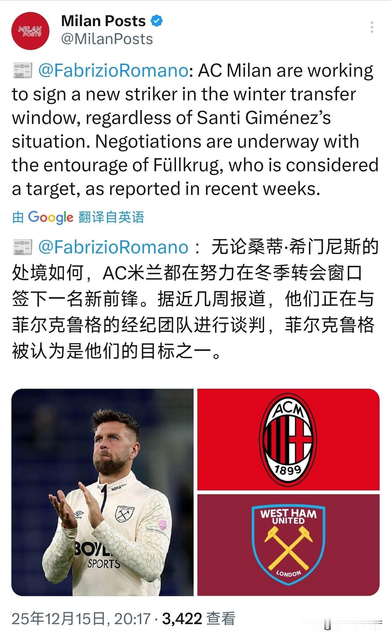 达成一致!米兰与德国前锋菲尔克鲁格达成一致!在未来几小时内,米兰将尝试与西汉姆达成协议,基础方案是一份纯租借至赛季结束的合同。据说西汉姆联俱乐部并不反对这样的方案。 莫雷托消息称塔雷正在努力敲定菲尔克鲁格的交易。菲尔克鲁格从很早就视米兰为优先选择,预计未来几天米兰将就菲尔克鲁格进行一次重要的提速。健康的菲尔克鲁格来米兰肯定是大家所期待的,但哥们到了英超后貌似一直身体不行,总是受伤,他自己清楚在这样他是不可能参加世界杯的,而且自己33岁了,这可能就是自己唯一的机会,只要菲尔克鲁格健康他来米兰肯定会尽力而为,现在就是担忧他的健康。 米兰与菲尔克鲁格达成一致的内容是租借半个赛季工资150万欧元,没有买断条款,但赛季结束可以参考双方意愿再决定是否进行永久转会谈判。菲尔克鲁格在与米兰达成一致后,已经拒绝了来自德甲俱乐部的邀请,他告知自己的经纪人,他现在只会考虑加盟米兰的问题,同时菲尔克鲁格也期望西汉姆联俱乐部能支持本次交易。