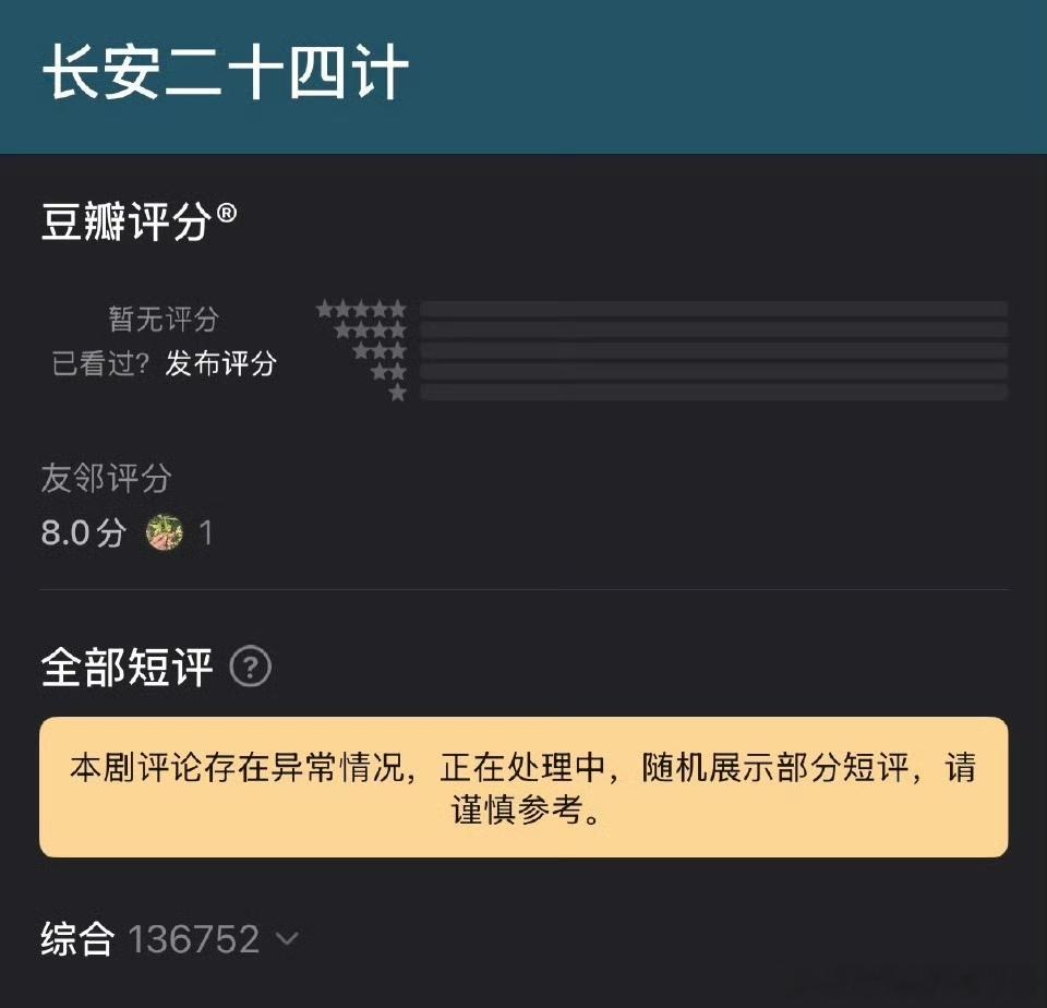 《长安二十四计》豆瓣评分异常,评论被折叠了长安二十四计豆瓣评论异常