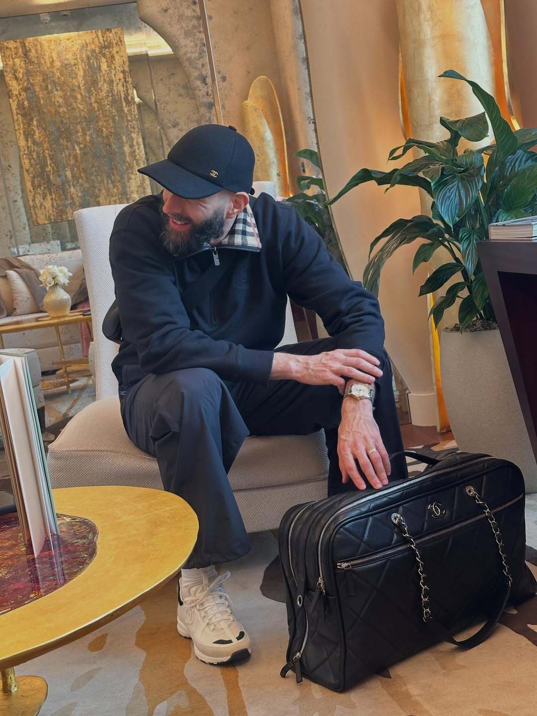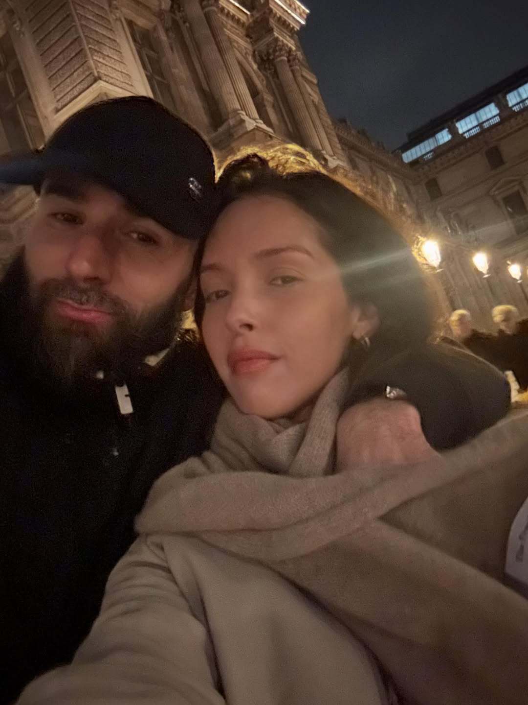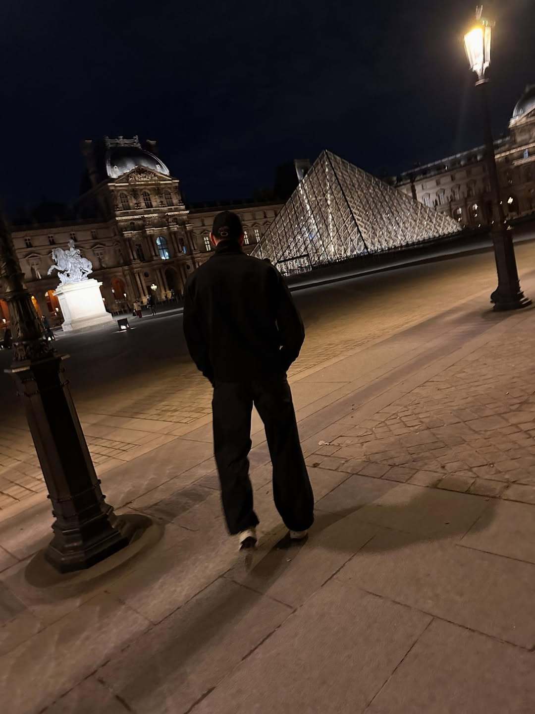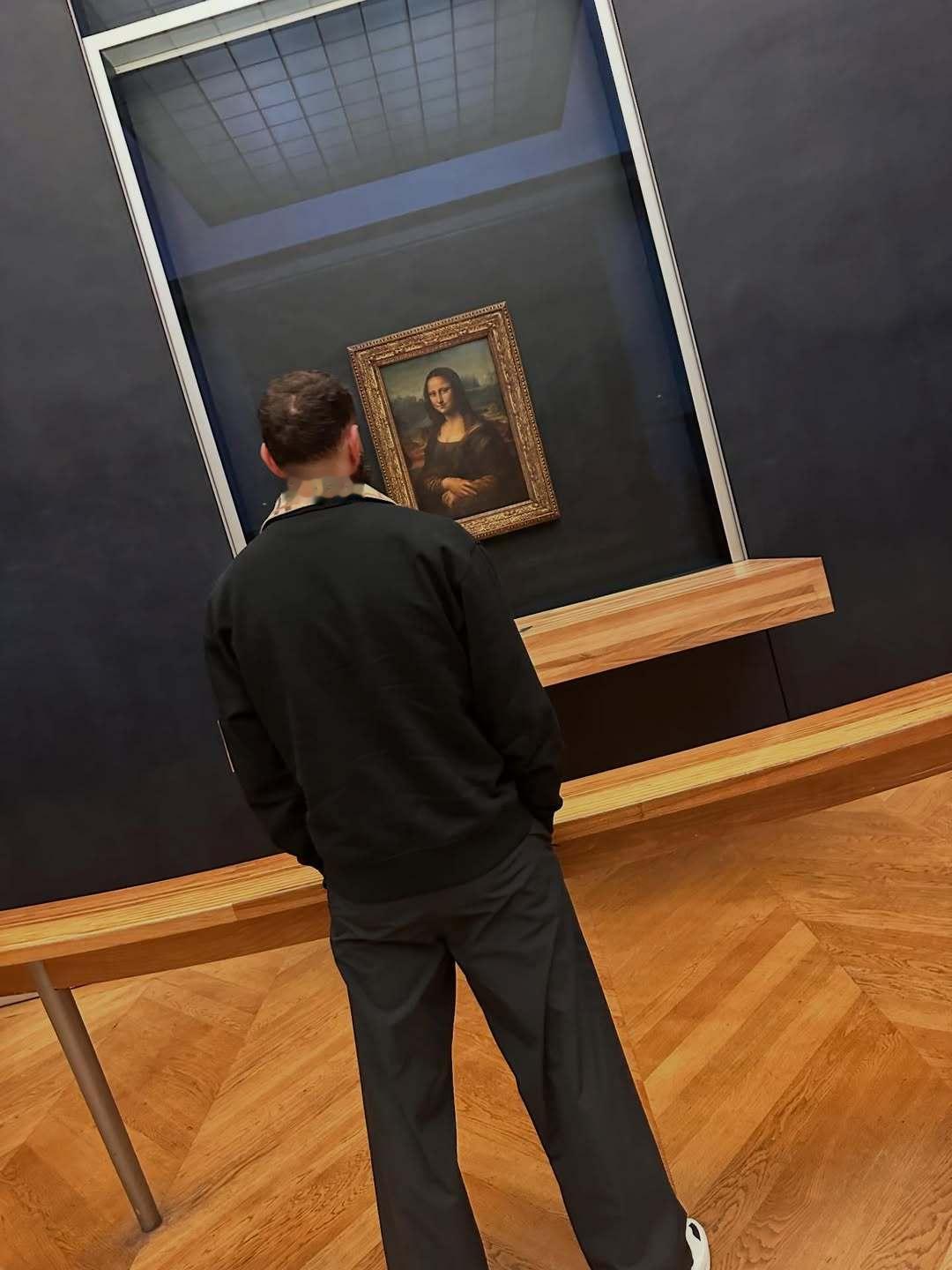 本泽马和女友参观卢浮宫。一件艺术品注视着另一件艺术品。