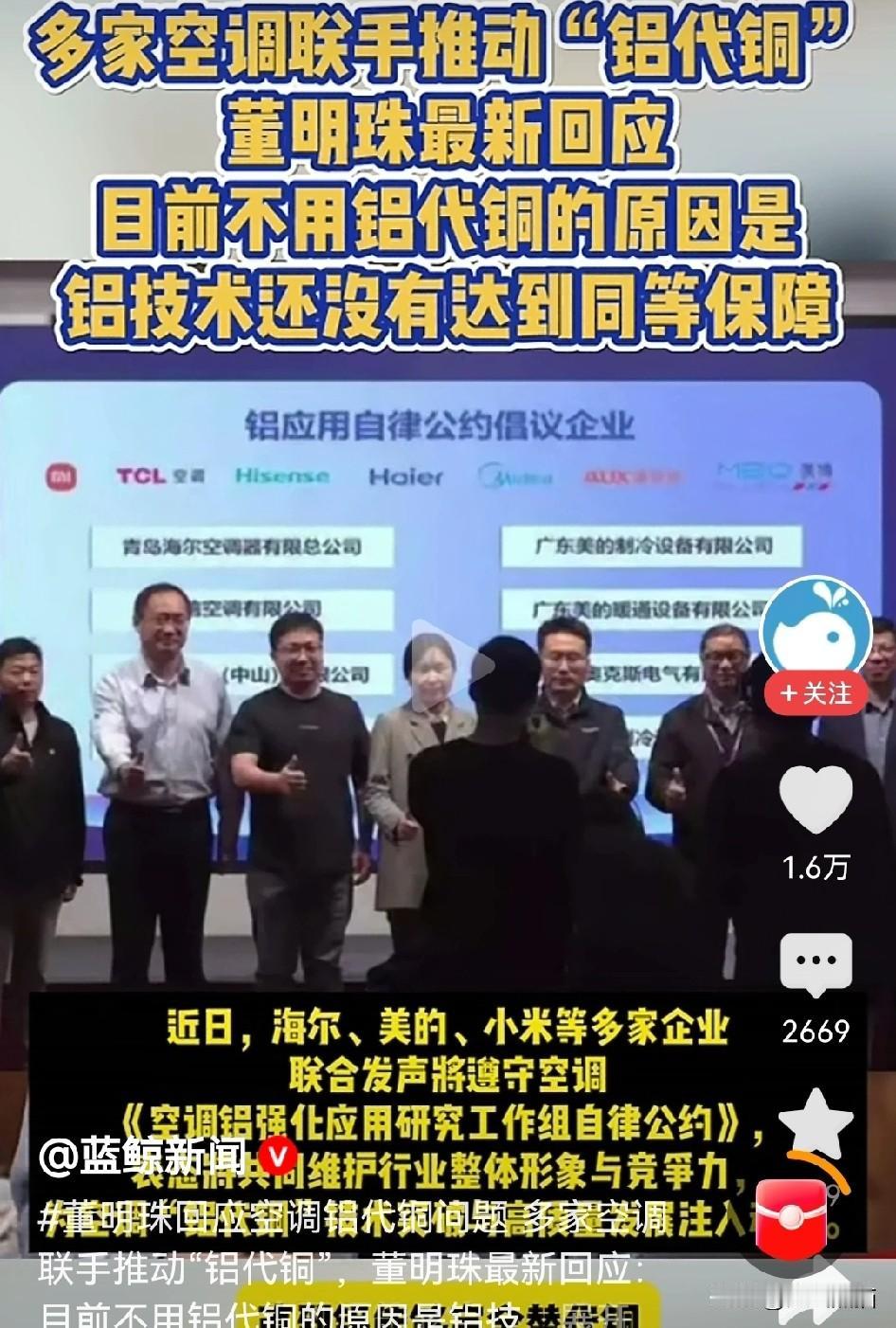 董明珠说的很明显,就是说如果用铝管代替铜管的话,一个空调的成本可以省个488块钱,但是以现在的技术还完全达不到相同的效果。 也就是说,如果用铜的话可能能用十年,如果用铝的话可能用个两三年,这样的话就会给消费者造成损失,如果技术达到能够完全替代自己也希望用铝,但是现在还不能确定。 可以说在这一点上,董明珠还是值得大家信赖的,在质量的把控上,不单单的是追求成本与利润,更考虑到的是消费者,以及企业能否走得长远。