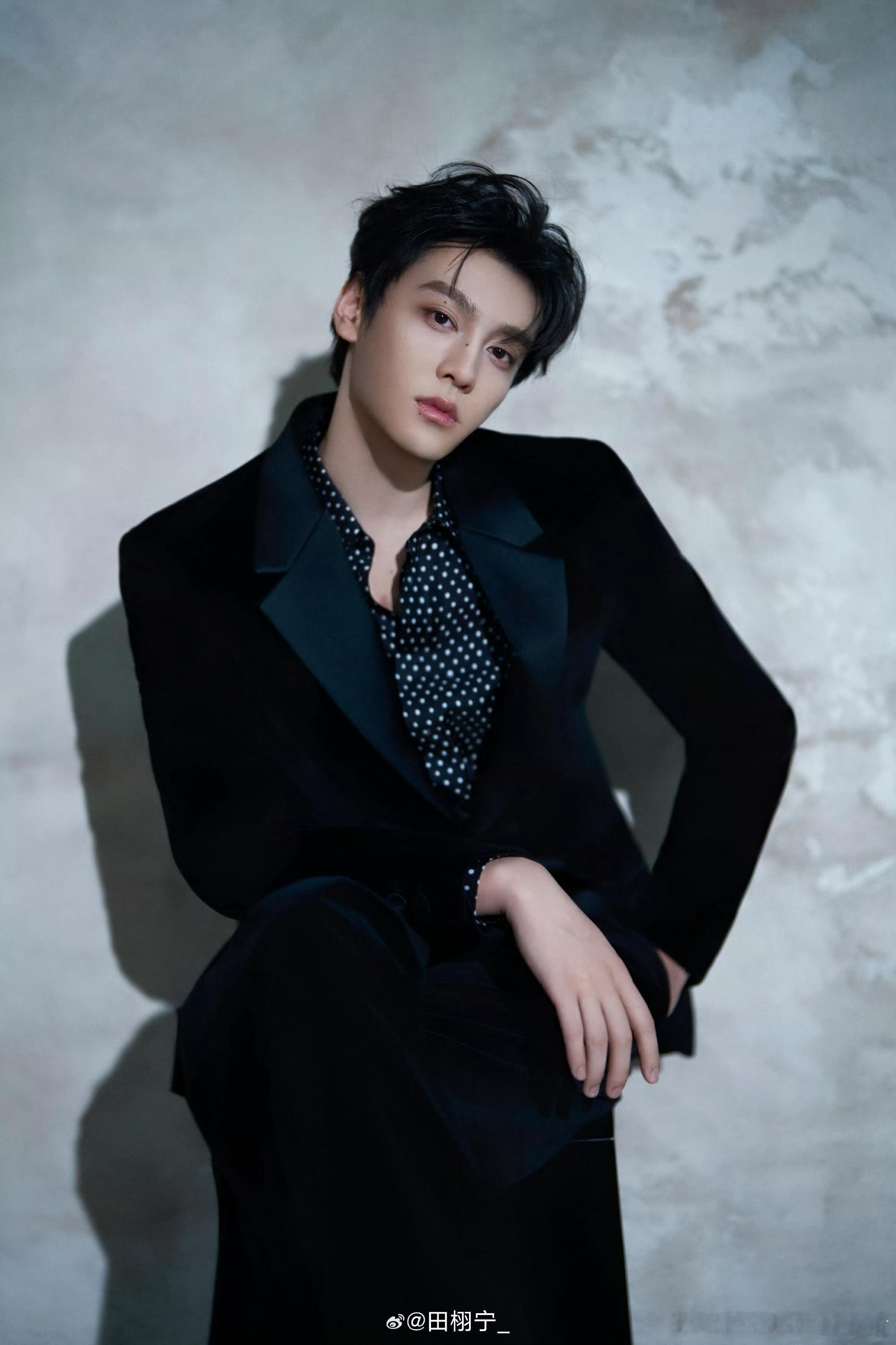 田栩宁今日营业照,波点衬衫西装🥵🥵