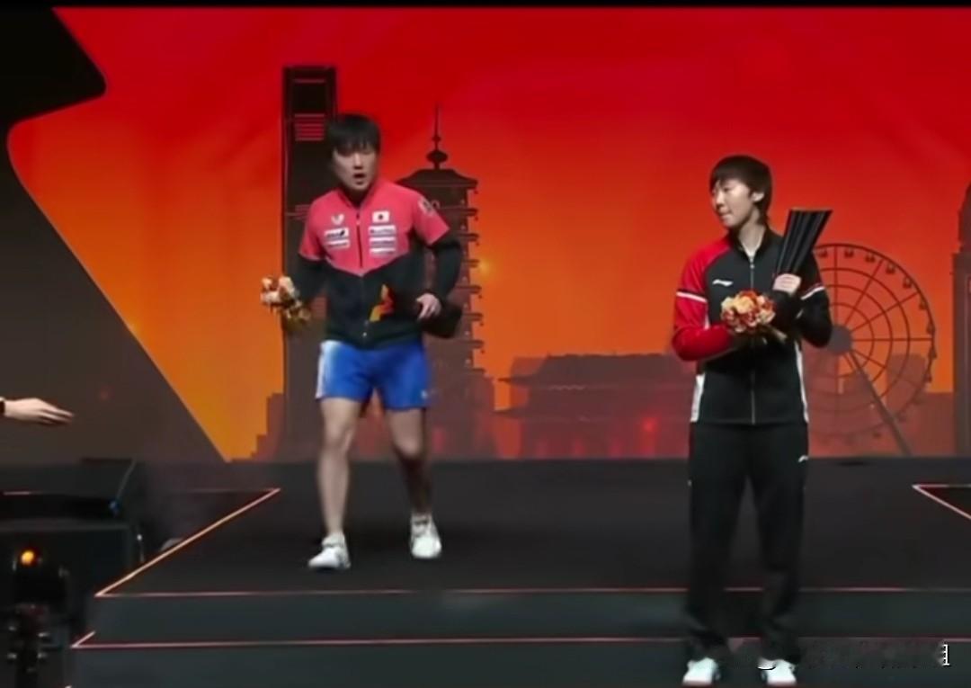 张本智和夺冠后与王曼昱合影时洋相百出,怪不得有人说他心中有鬼。 看他一手掂着奖杯,一手握着花束出来时鬼鬼祟祟的作态像极了个日本汉奸…… 不管他是不是故意的,但他拿这个冠军是虚的有水分的,如果王楚钦不退赛,那结果可能就不一样了。 有人说小日子心里有数,以此惺惺作态来掩盖他的心虚罢了。