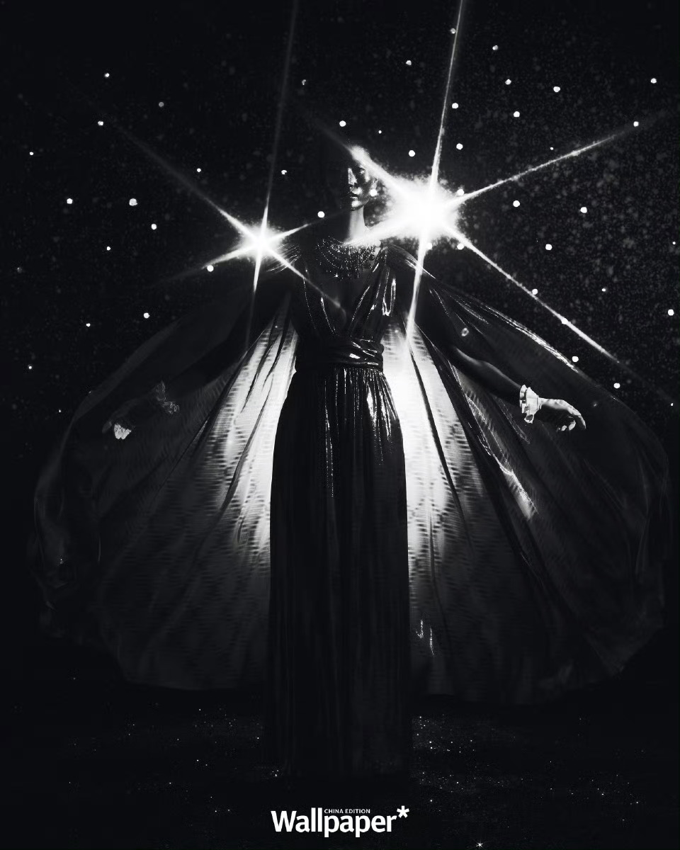 张丽娜 Wallpaper*中文版八周年刊封面。大片以「日月星辰LUMINARIES」为概念,用光的语言交织出三个不同篇章的视觉。摄影: 张家诚 🌌💫