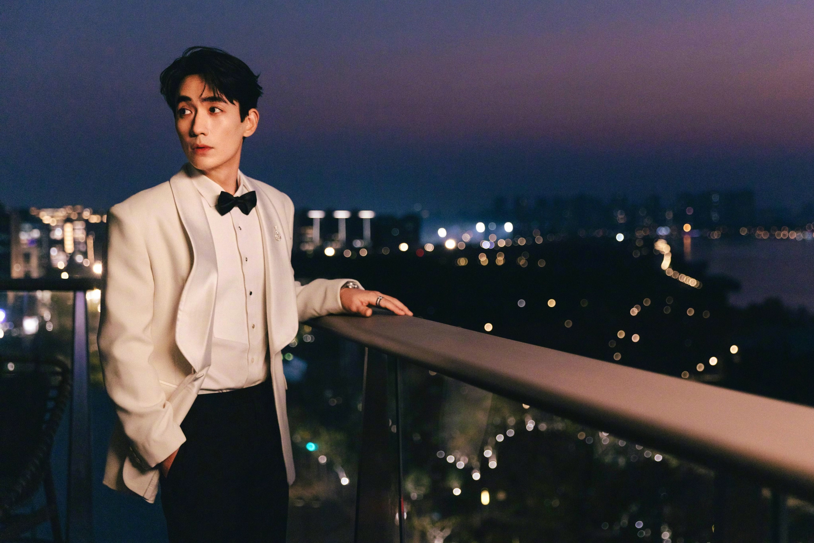 朱一龙 品牌活动造型图虽迟但到,白西装、黑领结、钻石胸针… 经典儒雅的绅士形象,举手投足间皆是翩然风度。🍸✨