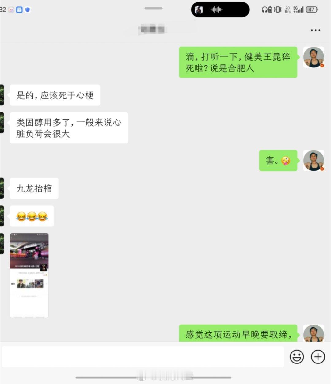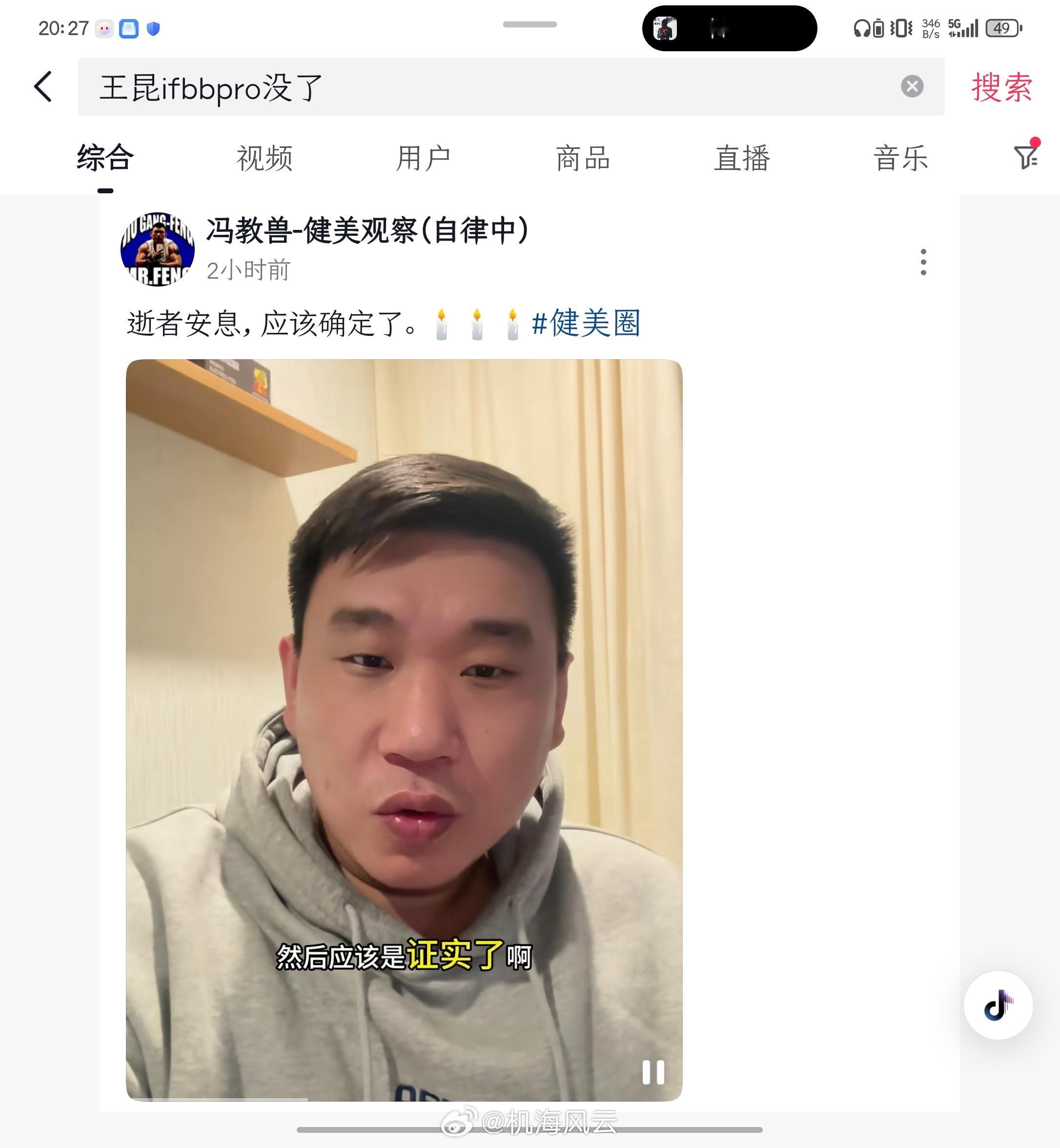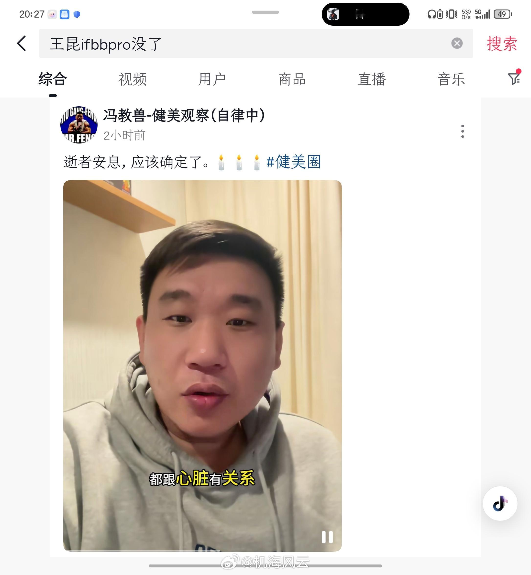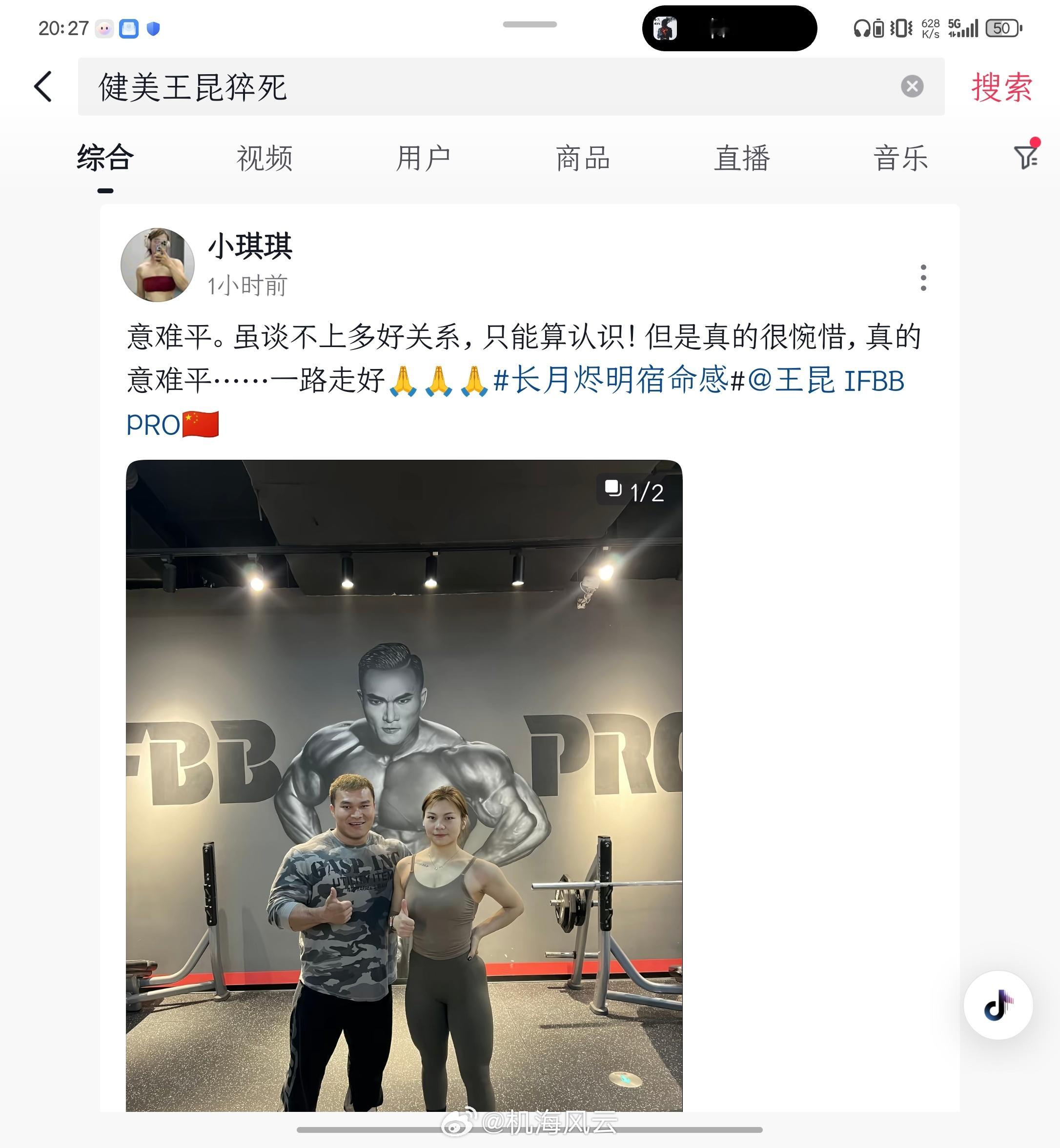 下午小伙伴发给我看,我还将信将疑,刚才看到不少自称王昆好友的证实了猝死消息,30岁,IFBB Pro,害…健美(特指职业健美)这项运动太变态了,趁早取缔吧PS:本着严谨,我也求证了一下我在合肥健身行业的朋友,确实“飞升”了。。