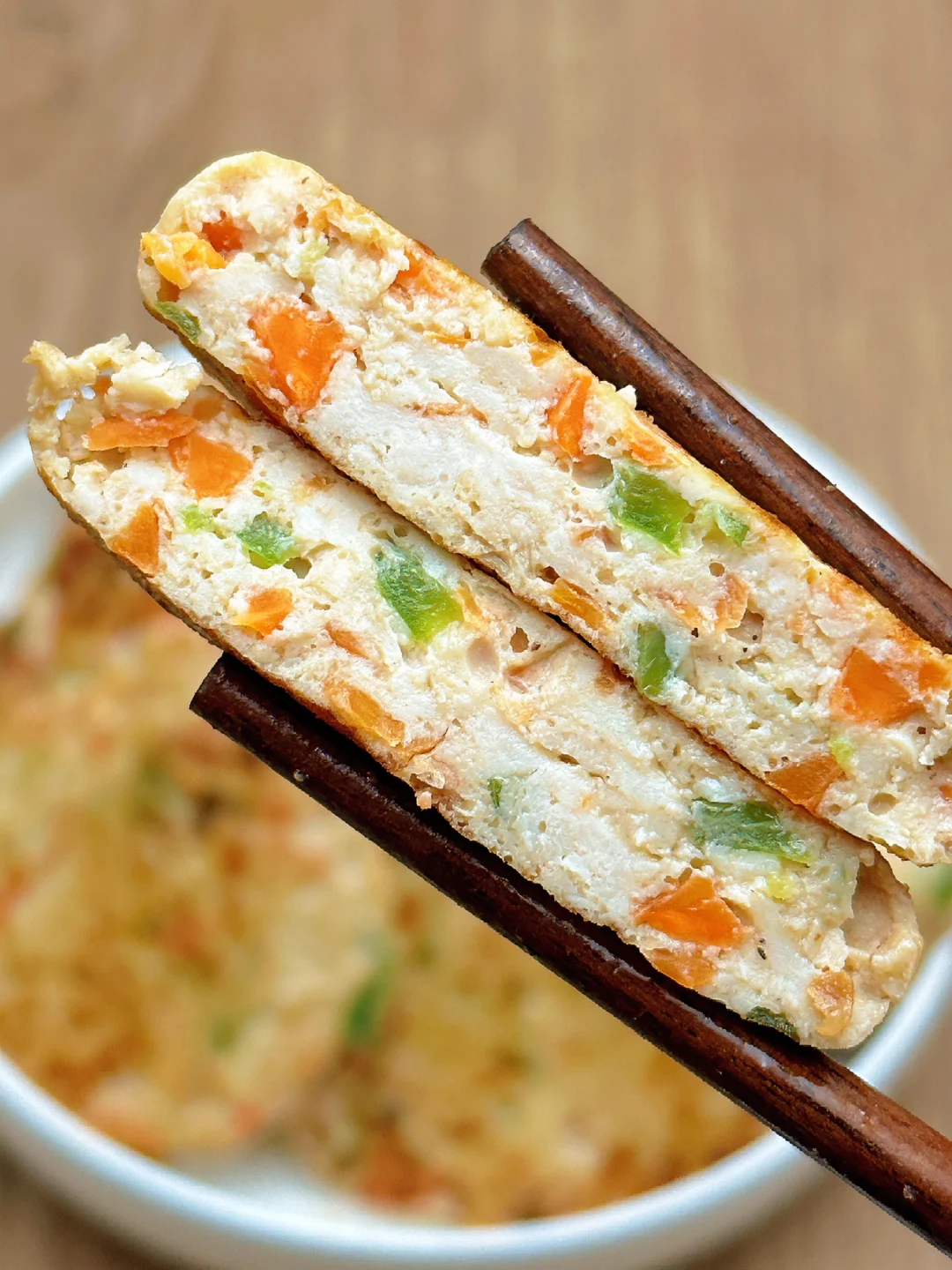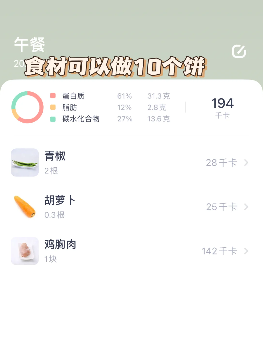🥗食材:鸡胸肉1块、胡萝卜、青椒(做了10个饼)
