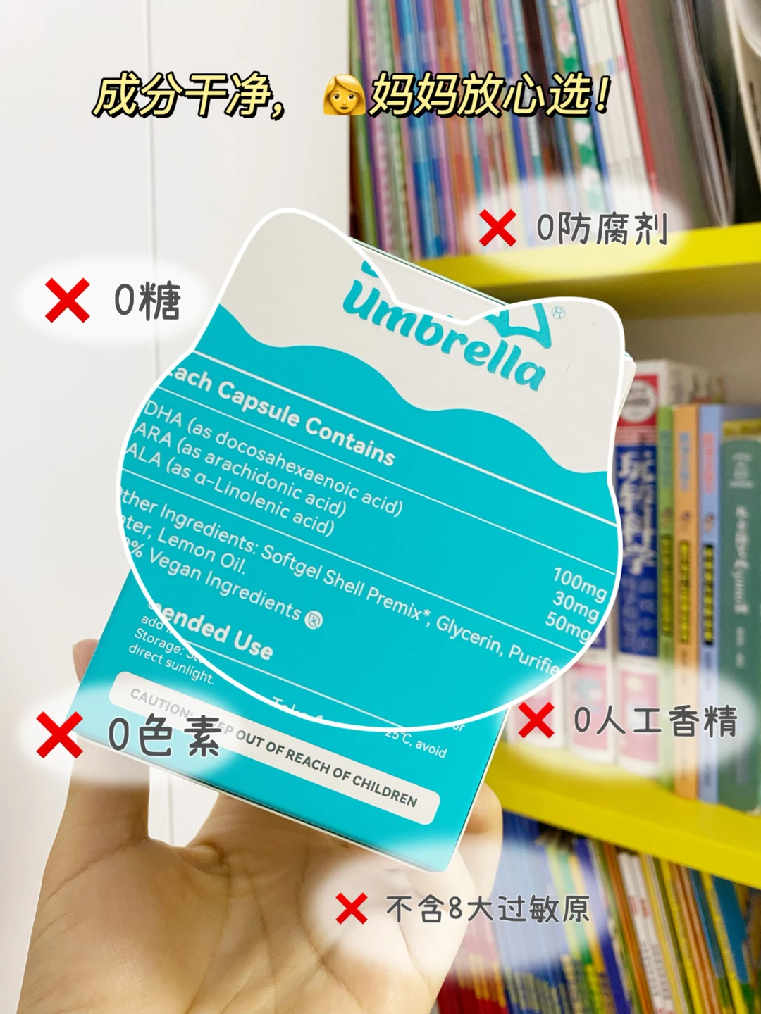 💎当初做了很多功课,千挑万选给宝宝选了小小伞超脑DHA,小小一粒富含三种营养,DHA+ARA+ALA,对应助力脑灰质、脑白质、海马体,全面补充强强联合,小脑瓜🧠自然灵光光!提取自深海裂壶藻,纯度高达57.2%,远超国际标准35%,一粒就含有藻油DHA100mg,3岁以下宝宝每天1粒,精准补充不过量。