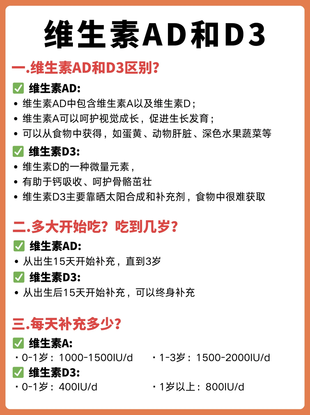 ⚠️ 维生素A容易通过饮食获取,维生素D除了补剂,还可以通过充足晒太阳来合成!