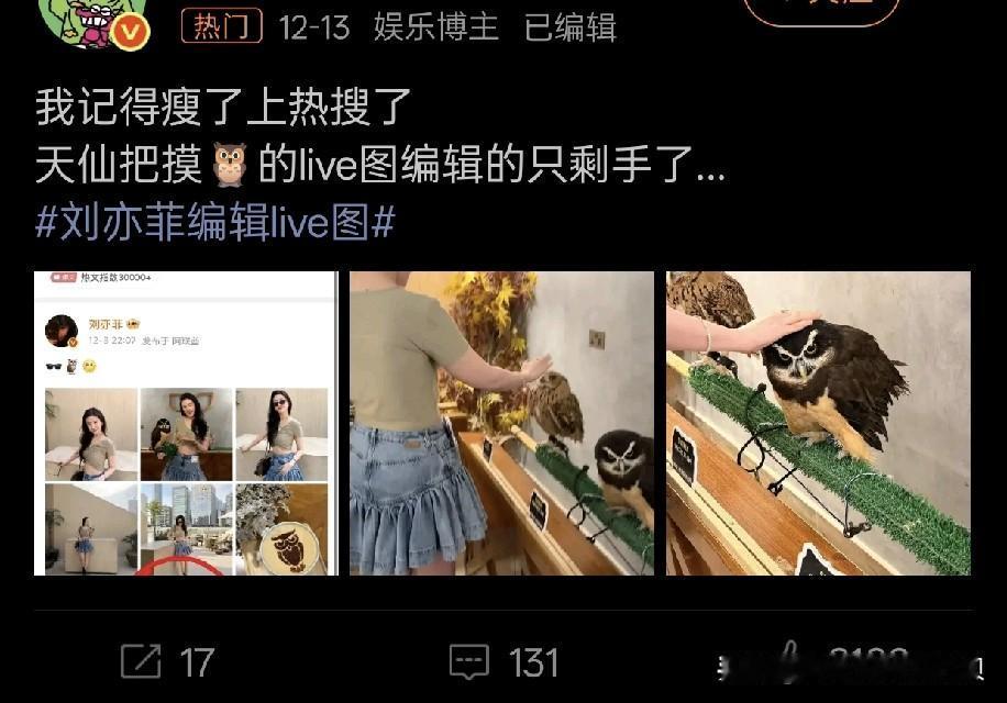 内娱流量🌸们天天生活在精修照,以及周遭遇工作人员的夸夸夸中, 是不是看到真实的自己也不能接受了? 比如刘亦菲,隔三差五就会从其古早美照里挑几张,买个热搜吹嘘一把。 屡试不爽的营销模式,已经持续了好多年。 结果刘亦菲这次晒照,不小心晒出了一张没精修的live图。 虽然只有个背影,但是依然能看到臃肿的身材,和发福的脸庞。 跟每次热搜里的神仙姐姐,相差甚远! 发布没多久,刘亦菲就重新编辑了这张照片,看来是破防了!