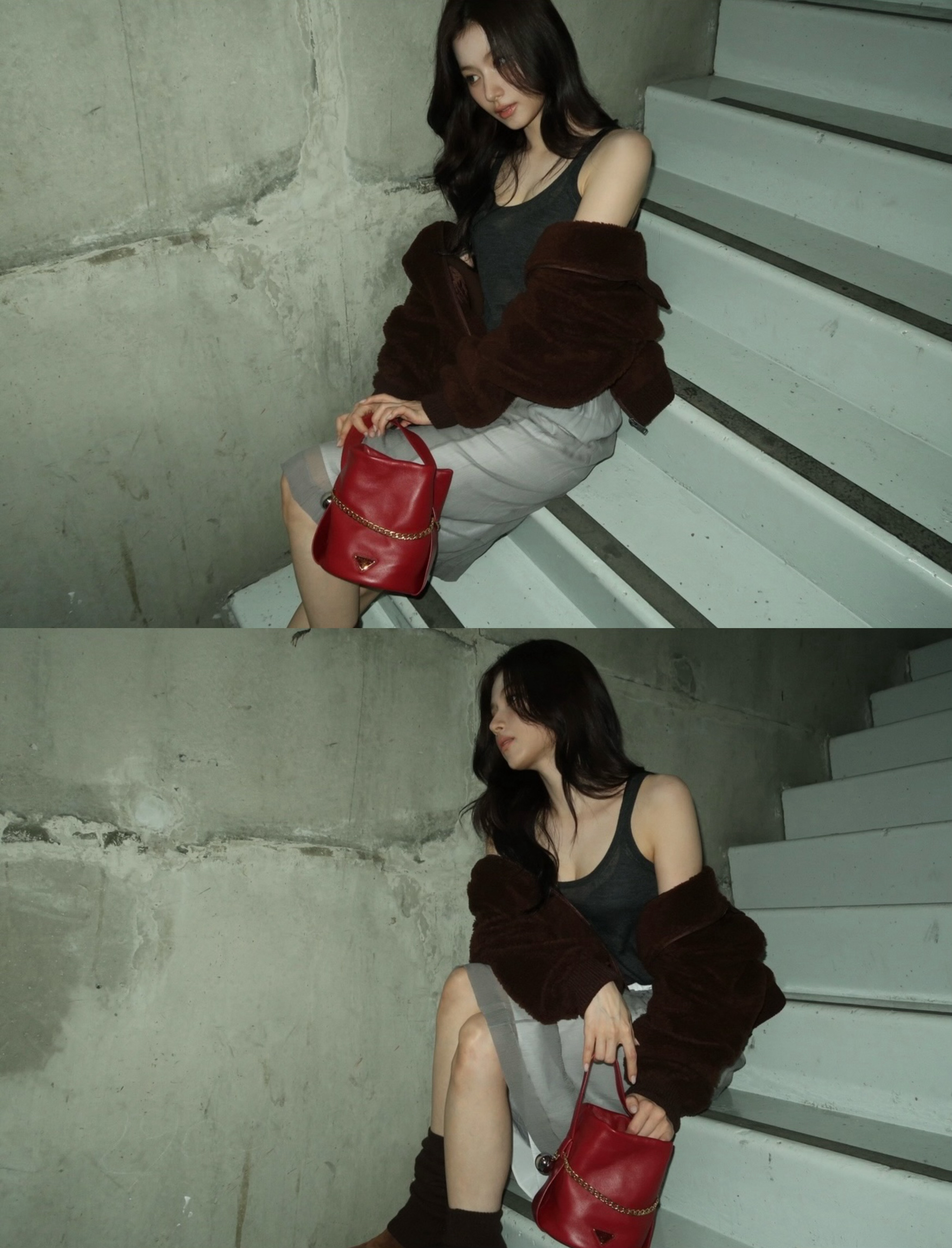 凑崎纱夏 Sana x Prada一组全新宣传大片演绎假日系列的Prada Petit Sac Noir红色皮革手袋❤️