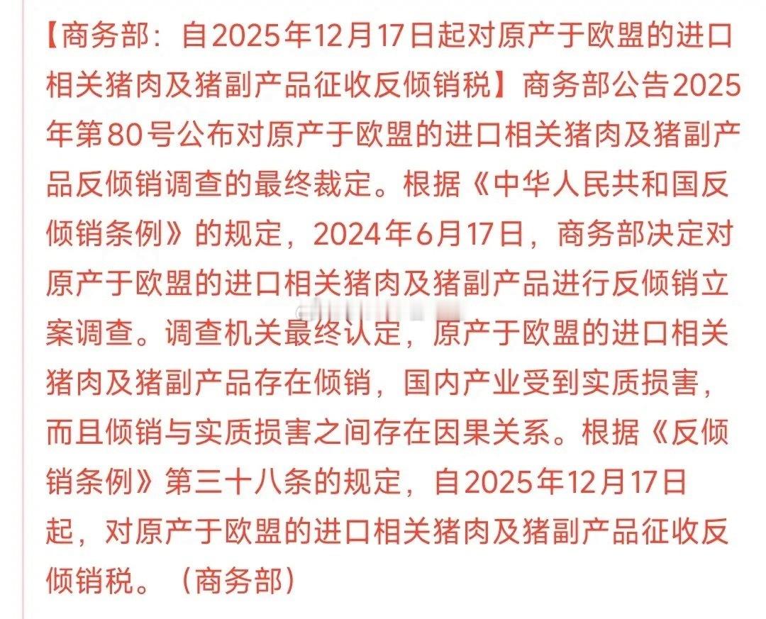 怪不得今天A股大跌,原来是新的贸易战又开始了,不同的对方变成了欧盟,相同的是中国一样会胜利2025年上半年我国猪肉及猪副产品进口量115万吨,其中自欧盟进口60万吨,占比52%。也就是说接下来大约50%的猪肉要从其他国家或者自给了,这意味着什么?当然是猪肉价格将会进行新一轮的上涨。今天A股的大跌跟当时跟美国打贸易战的时候一模一样,自己人先跌为敬,把一部分直接就吓趴下了,完全就是不讲理的跌幅,随着消息落地今天跌下去的也会涨上来。对于猪肉这轮贸易战,肯定会赢。A股今天也没有跌破位,牛市最后的底线还在。接下来的A就看以猪肉板块为代表的消费板块了,今天就已经启动了,明天还有期待。