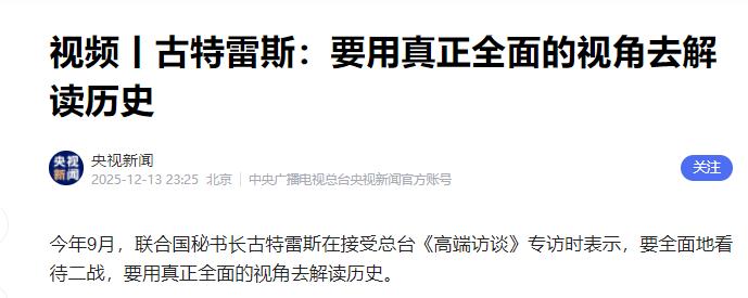 联合国秘书长终于打破沉默,古特雷斯表示:中国多年来的抗日斗争,是抗击日本的决定性