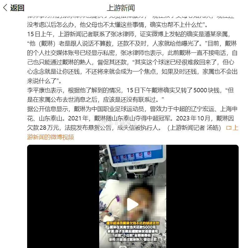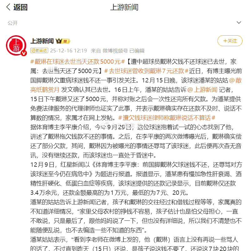 这真是绝了!欠几万块钱,一次还了7块!这是什么操作……直至媒体曝光,才在球迷去世当天还了5000块,还差29000,也不知现在还清了没? 不要说:戴琳入选过国家队,我不听!大家都知道国足很烂,但很富!球员欠款
