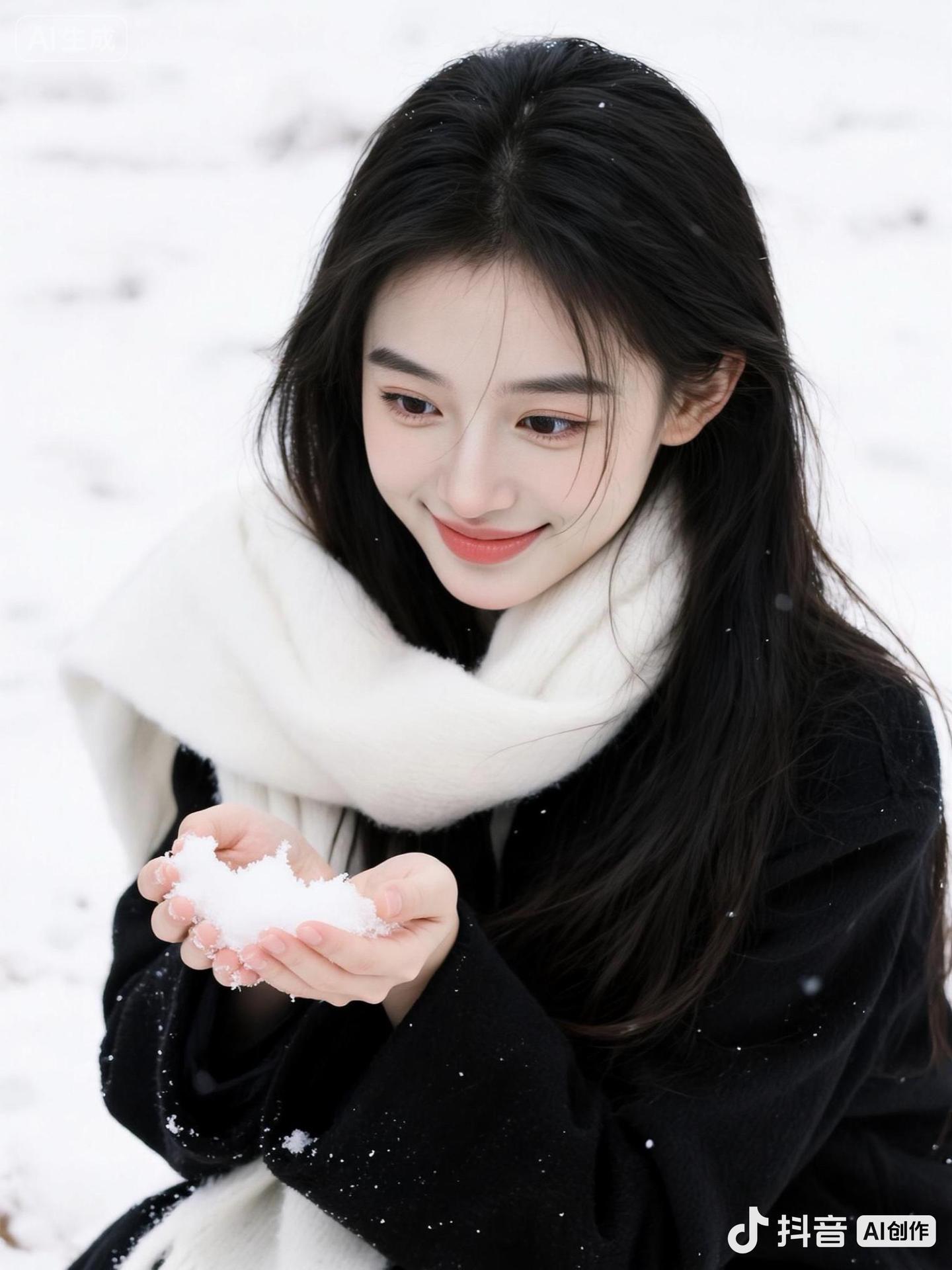 风雪中 她更像是一座白色的岛屿。