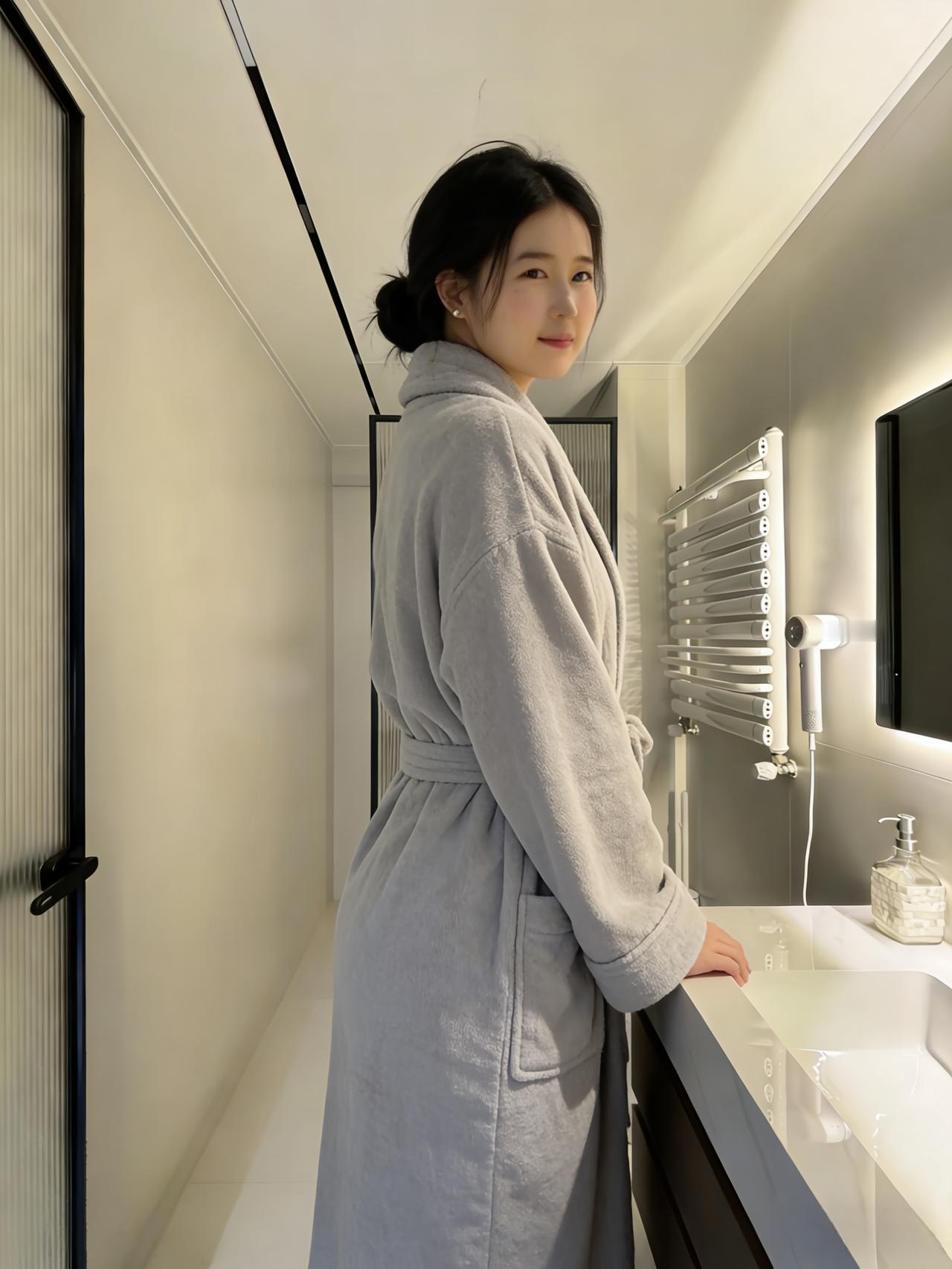 睡衣裹云愁,凝妆对镜幽。 不言春思远,独立浴堂秋。
