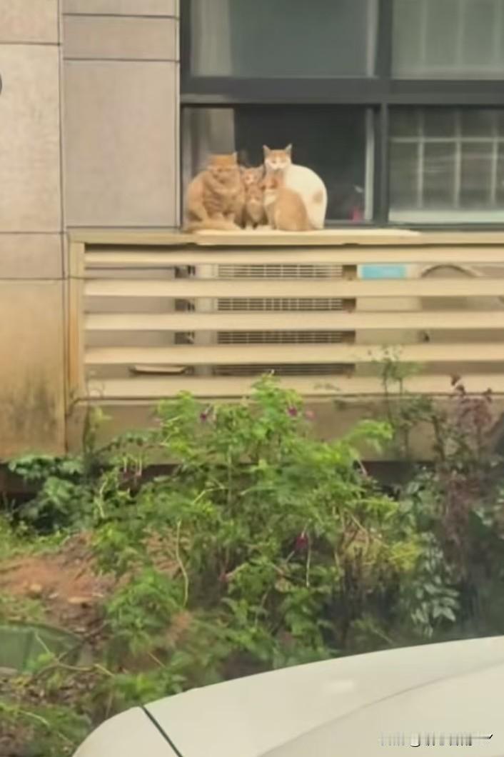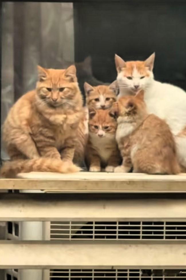 雨天里的橘猫“家族”,暖化了谁的心? 雨天的小区里,砖瓦路湿漉漉的,落叶被雨水打落一地。 不经意间抬头,只见一户人家的窗台外,一群橘猫聚在一块避雨。 有圆滚滚的大橘,也有怯生生的小橘,它们团坐在空调外机上,眼神中带着几分茫然,却因彼此依偎而添了几份安慰。 它们或许是流浪的小生命的,此刻却在这一方寸之地找到了临时的“家”。 看着它们紧紧相拥在一起的模样,忽然觉得,这些毛孩子之间的陪伴与依赖真的好治愈啊~