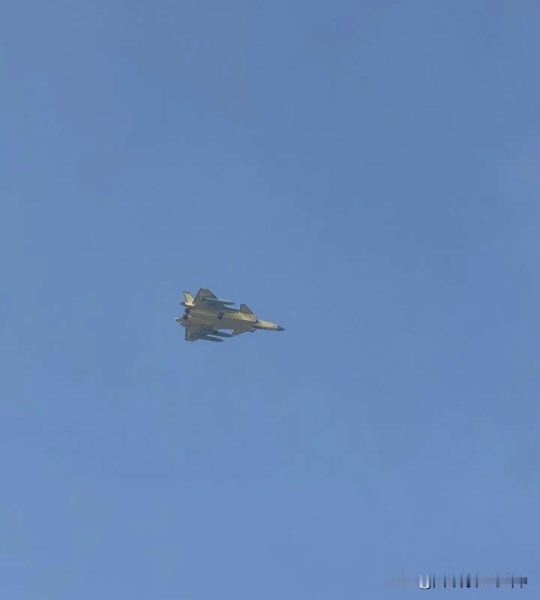 十六,是你吗?秀儿! 啊,不是啊?是20呀! 挂8弹的歼20常见,4个副油箱的20不常见吧?机身那层黄色底漆,一看就是刚出厂的新机。 新机出厂后要直接飞到服役基地,挂四个副油箱能多装燃油,不用中途停其他基地加油。 作为隐形机,歼20平时肯定要维持隐身性能,不会挂这么多副油箱增加雷达反射信号。 现在六代机的消息越来越多,未来歼20大概率要接过歼16的部分活,变成多用途战机,挂副油箱也能看出它的野兽改装潜力不小。