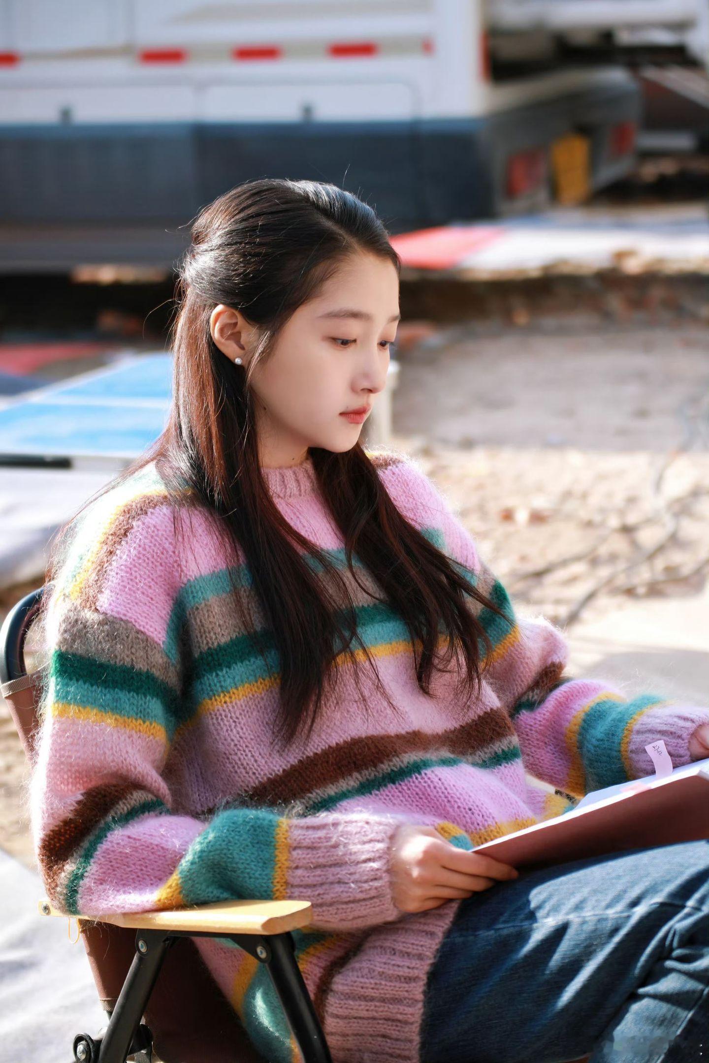 是认真读剧本的晓彤呀马海毛毛衣也太适合秋冬了