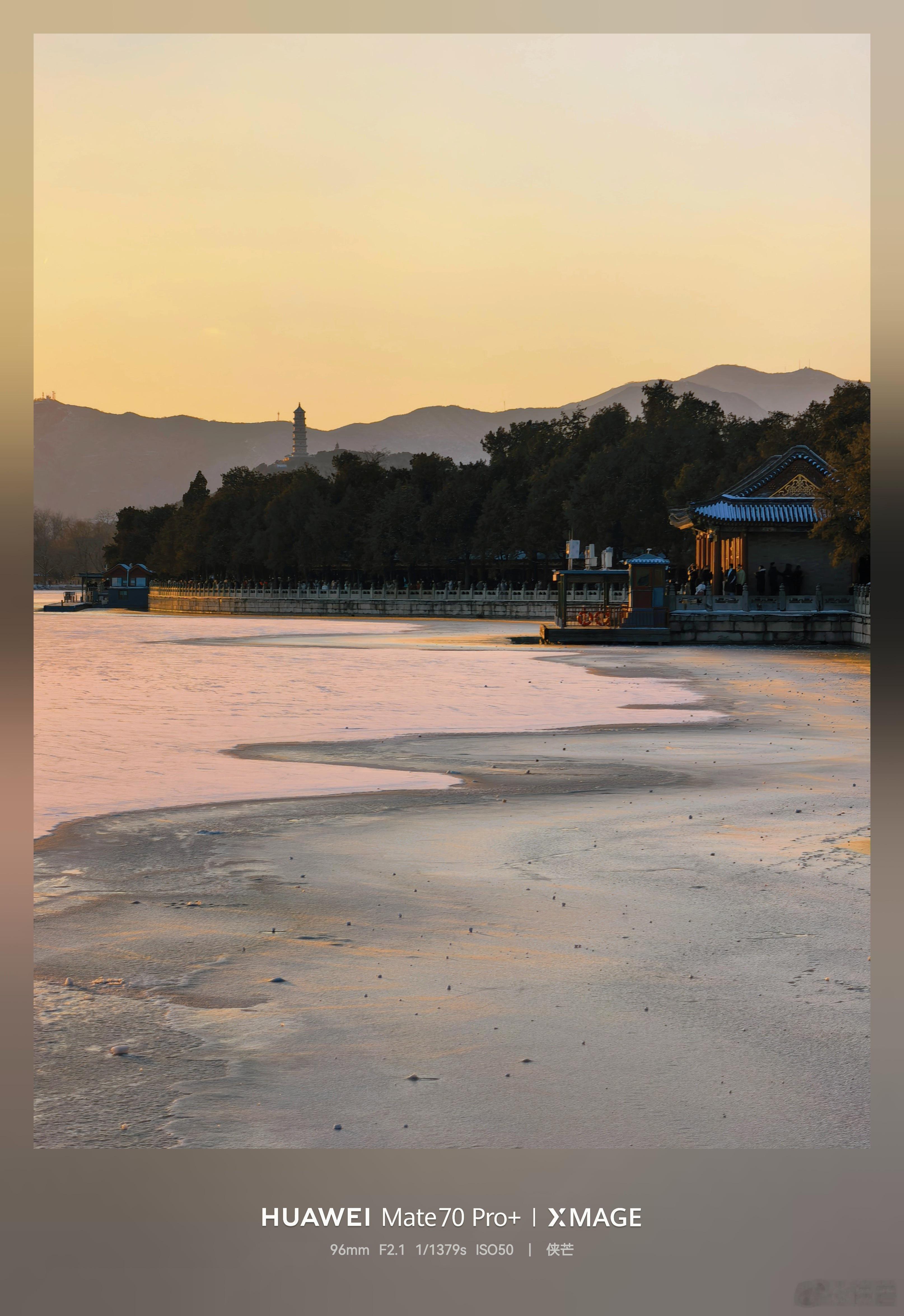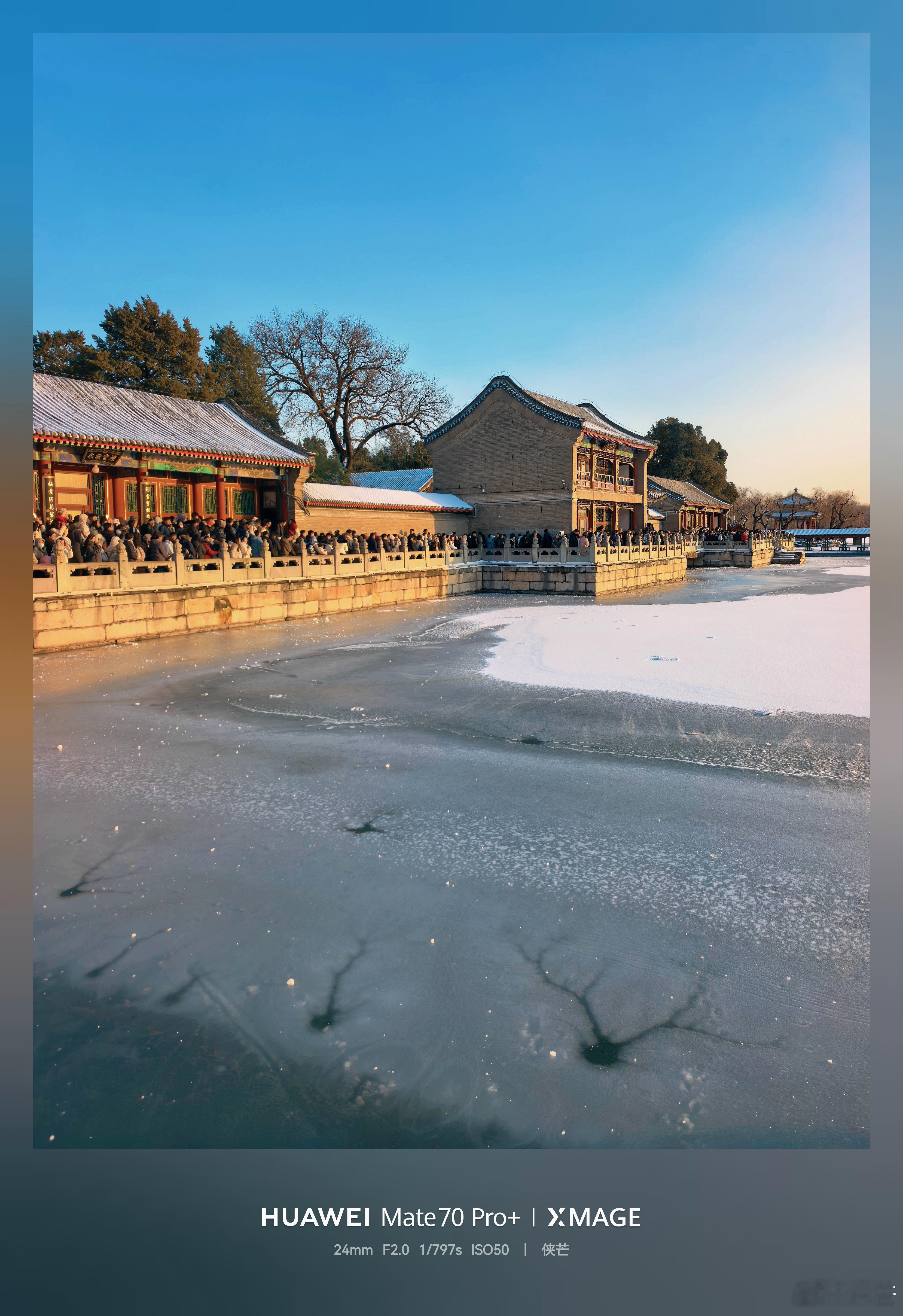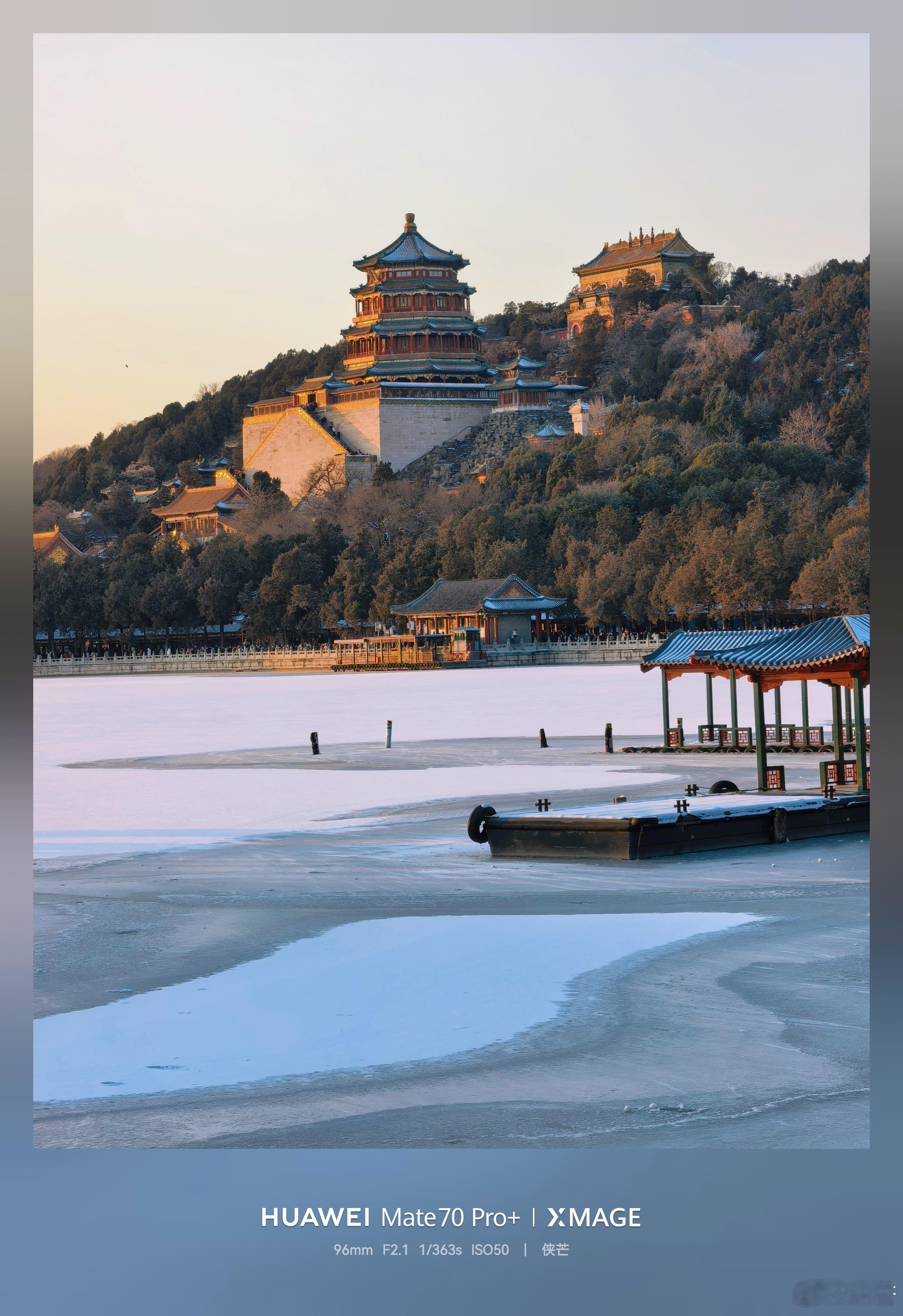 〖雪映颐和〗 大雪初霁,昆明湖冰面与残雪交融,夕照洒落,泛起粼粼金光。冰上悄然凝结出天然树纹,如画师挥毫,勾勒出冬日奇景。佛香阁巍然静立,知春亭掩映其间,古韵盎然。摄影