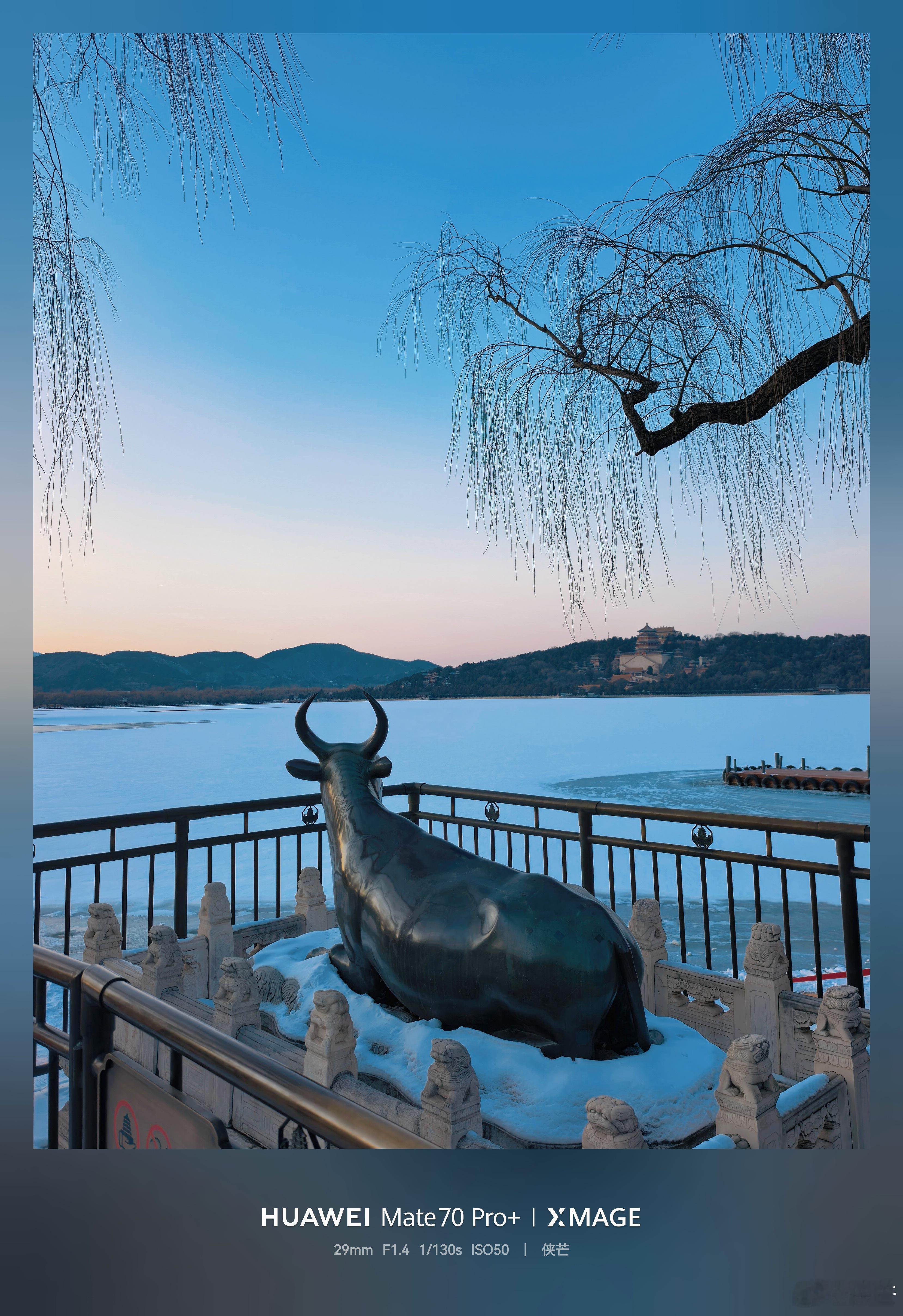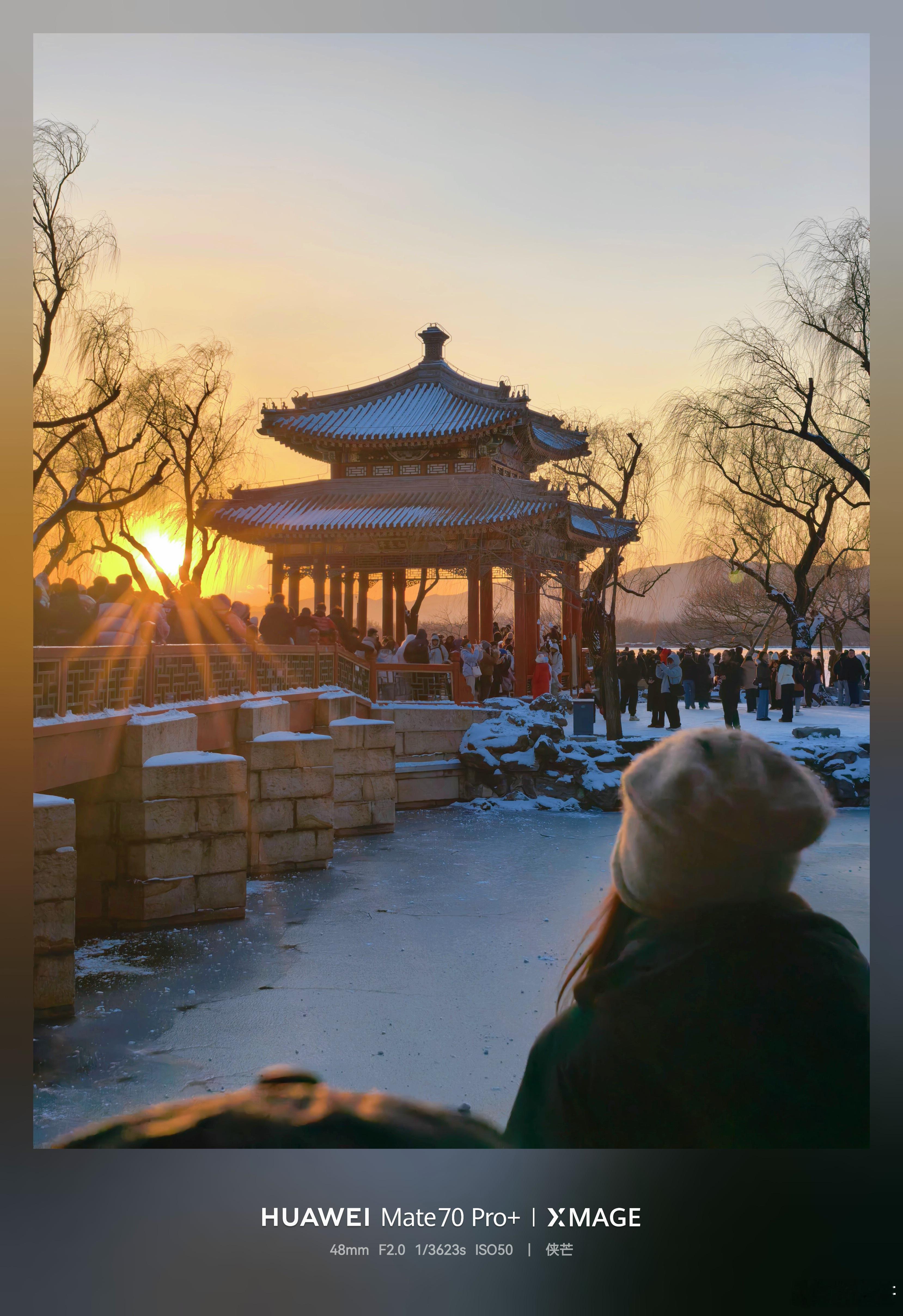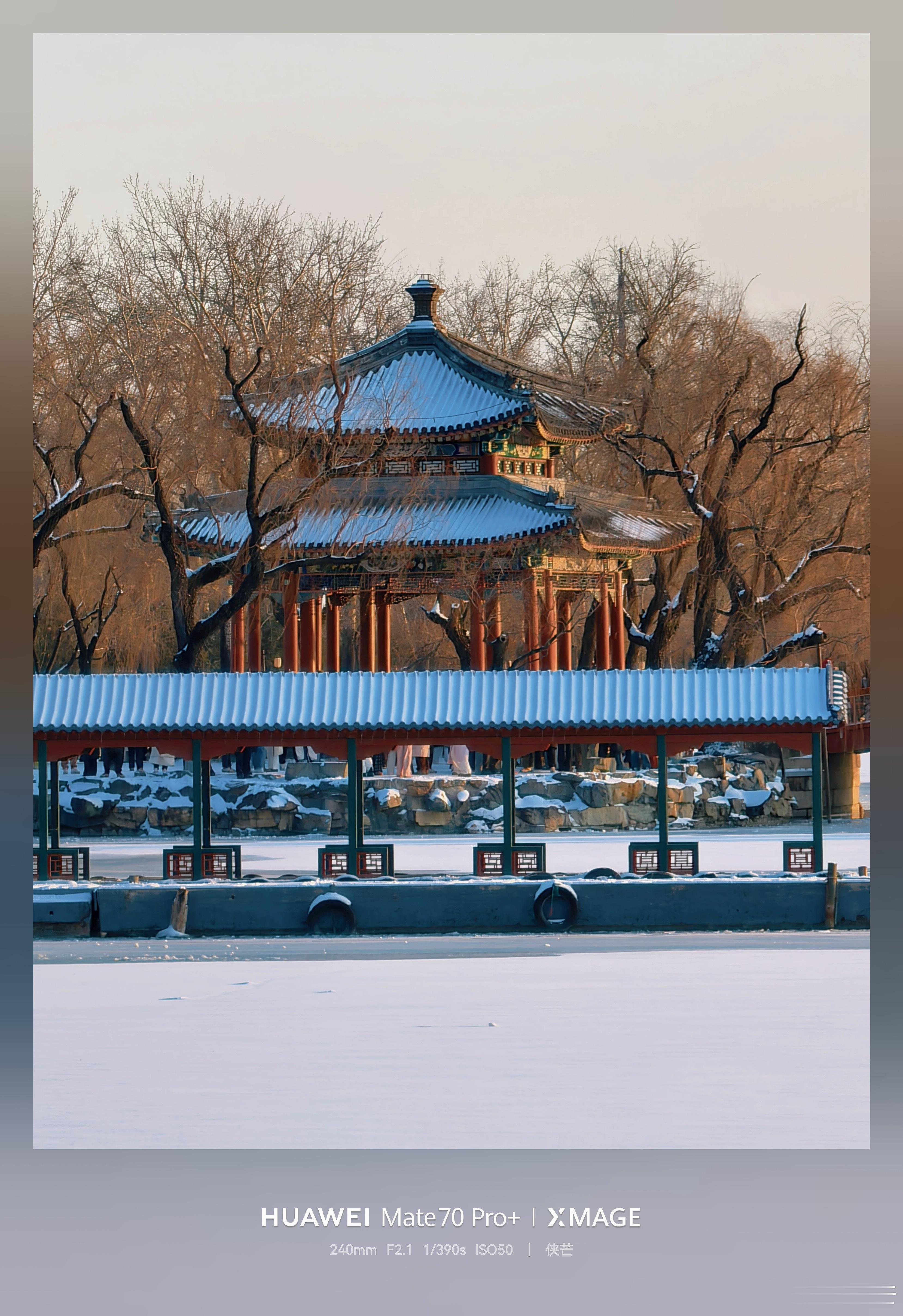 〖雪映颐和〗 大雪初霁,昆明湖冰面与残雪交融,夕照洒落,泛起粼粼金光。冰上悄然凝结出天然树纹,如画师挥毫,勾勒出冬日奇景。佛香阁巍然静立,知春亭掩映其间,古韵盎然。摄影