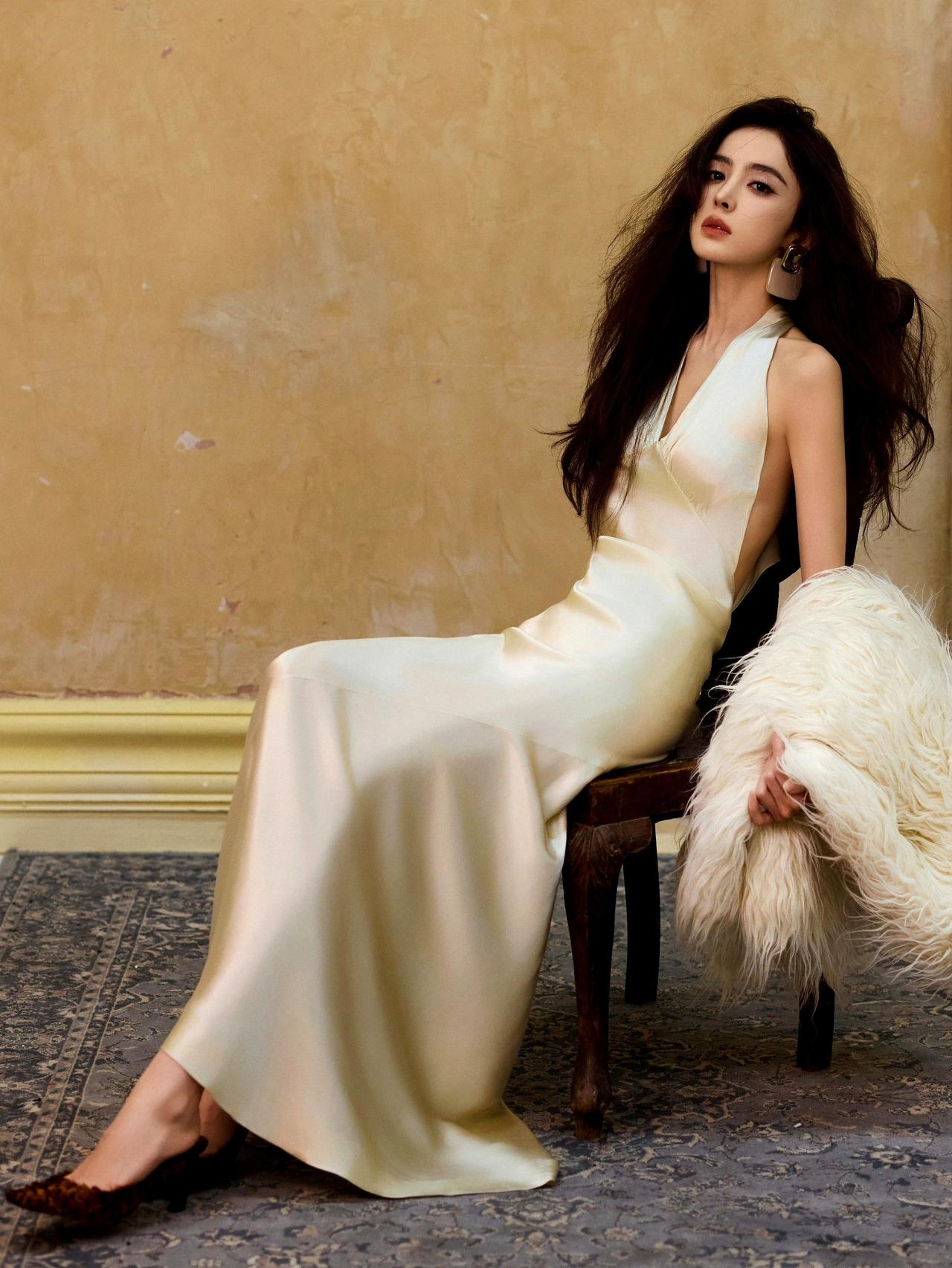 颜值暴击!古力娜扎香槟缎面裙造型,氛围感直接拉满✨古力娜扎明星穿搭 好身材性感女神 气质女明星