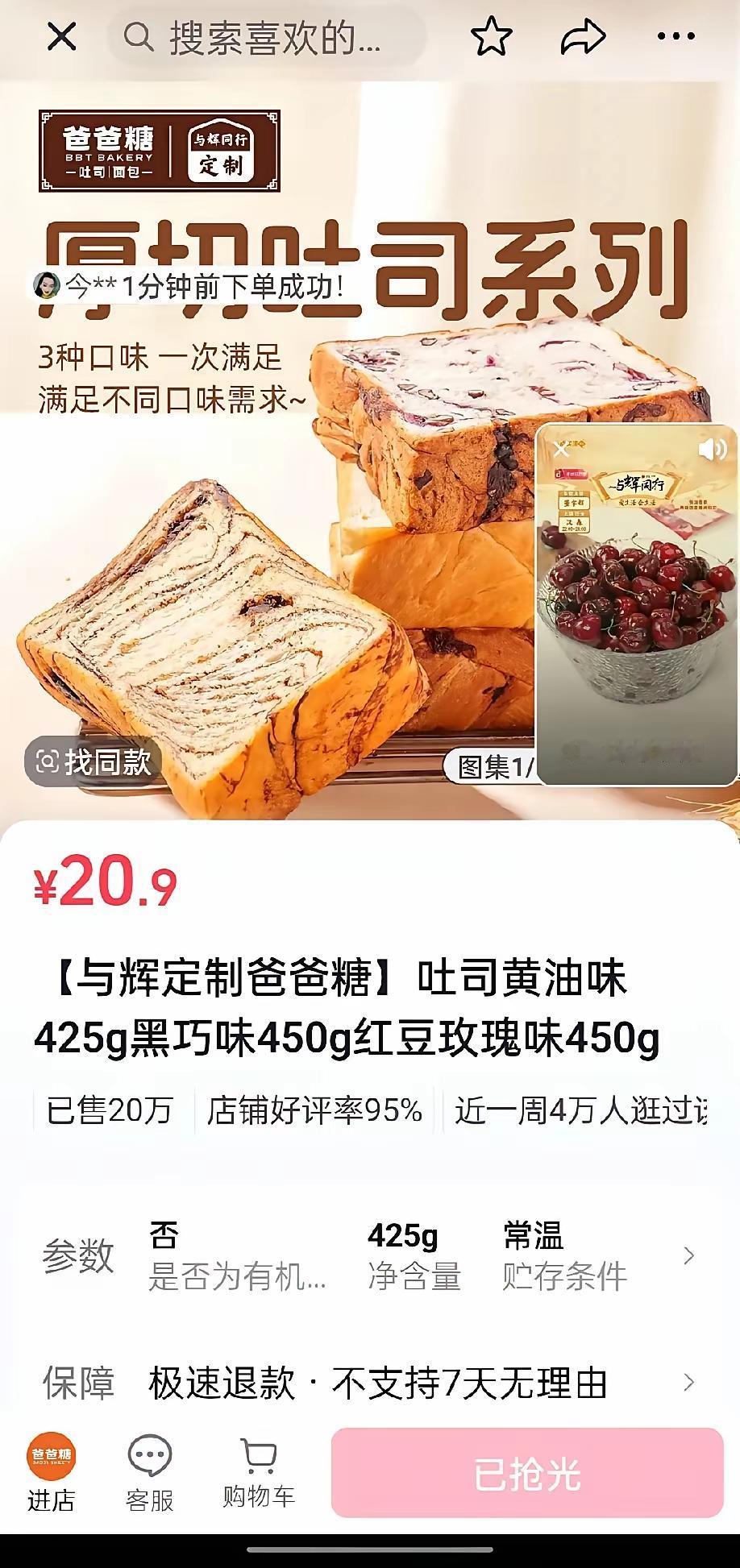 董宇辉卖20.9元吐司,老实到让人心疼? 昨晚直播间,与辉同行×爸爸糖的定制吐