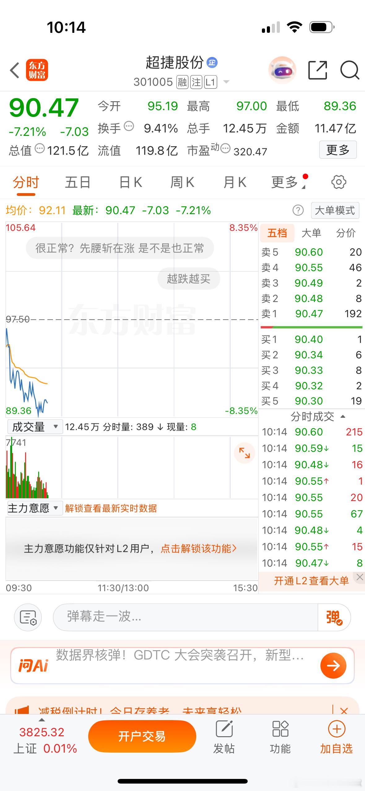次新股波动太大,昨天入的超捷股份开盘就下杀8%!如果不是轻仓玩,真的扛不住!芳华剧本