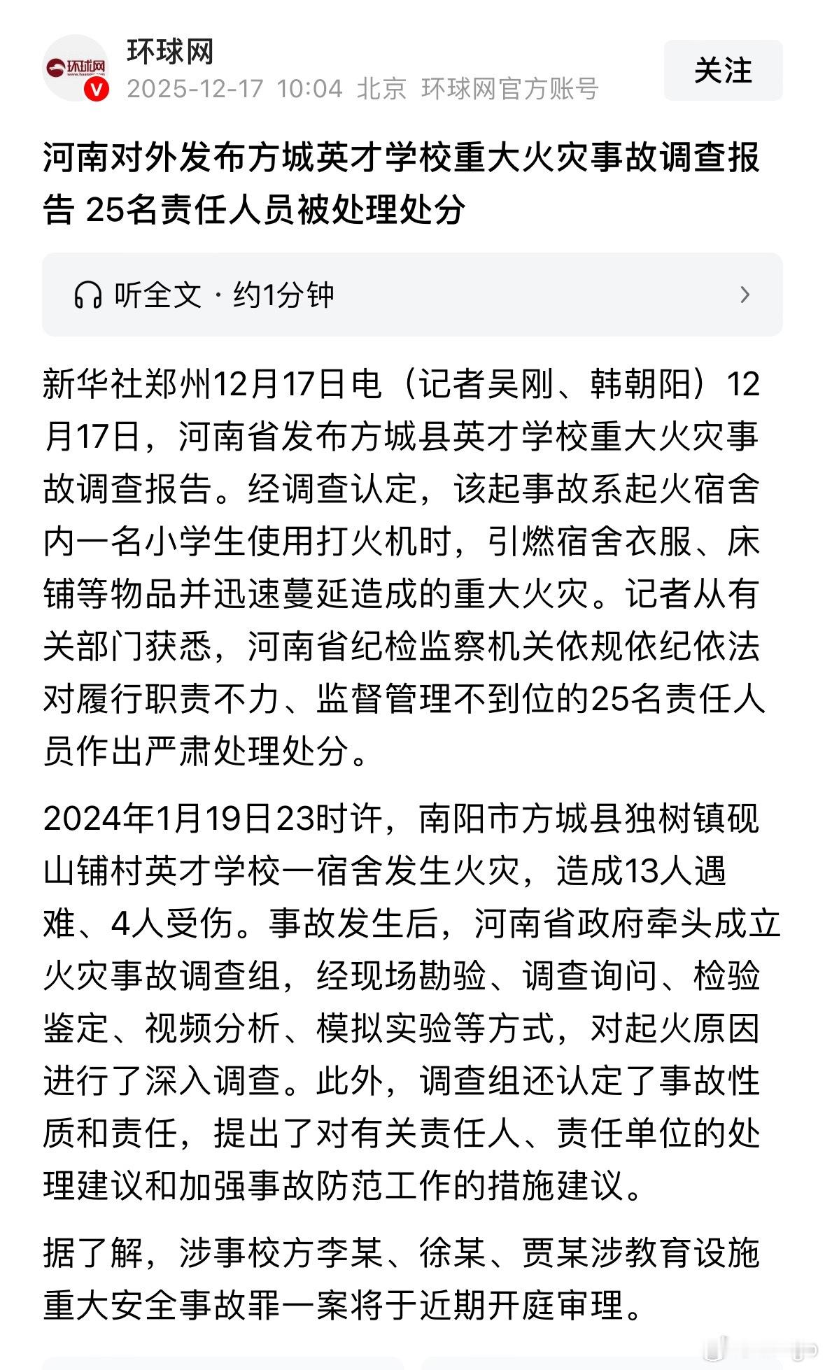 河南通报方城学校火灾事故调查结果25名责任人员被处理处。 图二是之前的通报。