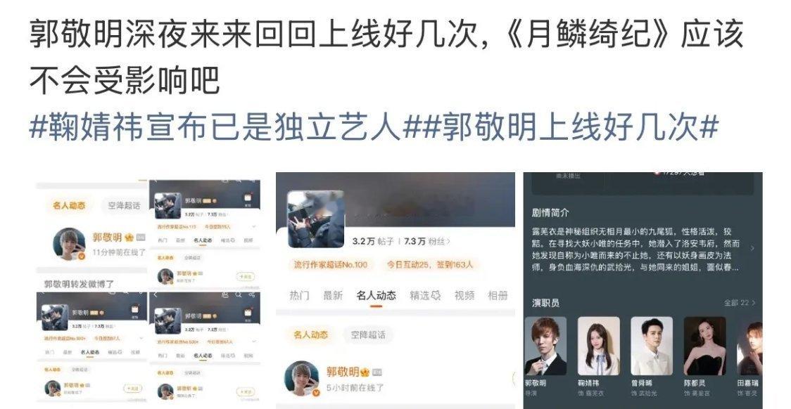 12月17号这事儿还挺有意思,郭敬明是真担心鞠婧祎塌房吧!鞠婧祎说“关关难过关关过”,而郭敬明呢,平时不咋上线的人,昨晚却频频冒头,估计是在盯着鞠婧祎和芭乐这边的最新情况。就目前看,鞠婧祎只要在“水务”这块没毛病,那她本人和她的剧应该都没啥事。但感觉芭乐现在明显有意往“水务”这块引导……