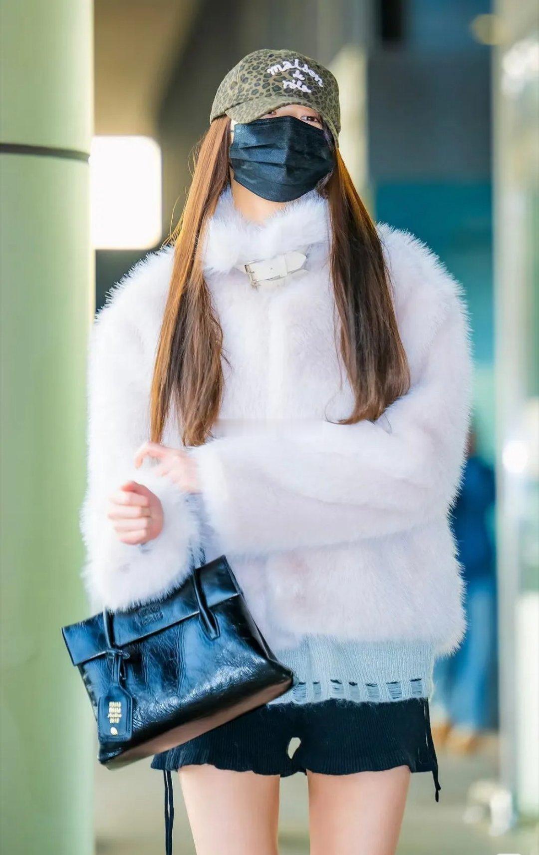 张元英今天机场出发造型绝了!白色仿皮草毛绒外套配半裙长靴,妥妥长腿萌兔一只~ 年末行程也太满了吧,小圆这是连轴转的节奏呀!