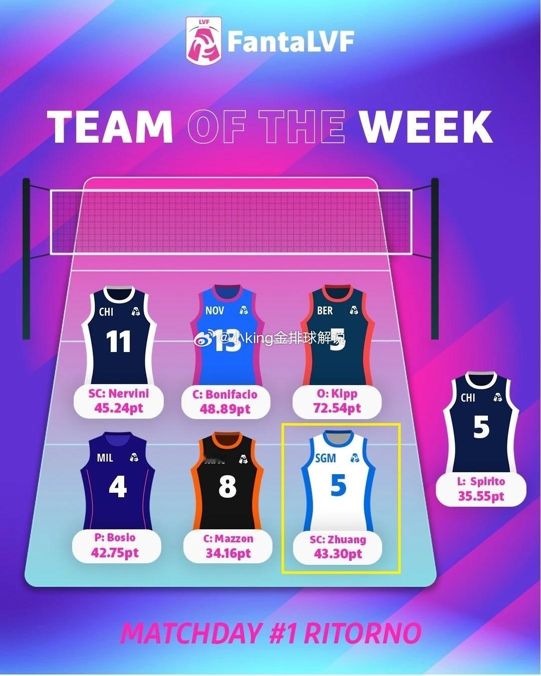 庄宇珊在第14轮中以43.30pt的估值入选本轮最佳主攻之一,FantaLVF的数据,这代表着更多海外球迷愿意把她列入到自己喜欢的交易阵容当中,她的稳定发挥赢得了媒体和球迷的认可。就是意味着很多球迷喜欢庄宇珊,希望这种球迷的认可度也会左右俱乐部下个赛季的转会需求。中国女排圣乔瓦尼女排官宣庄宇珊加盟意大利女排联赛