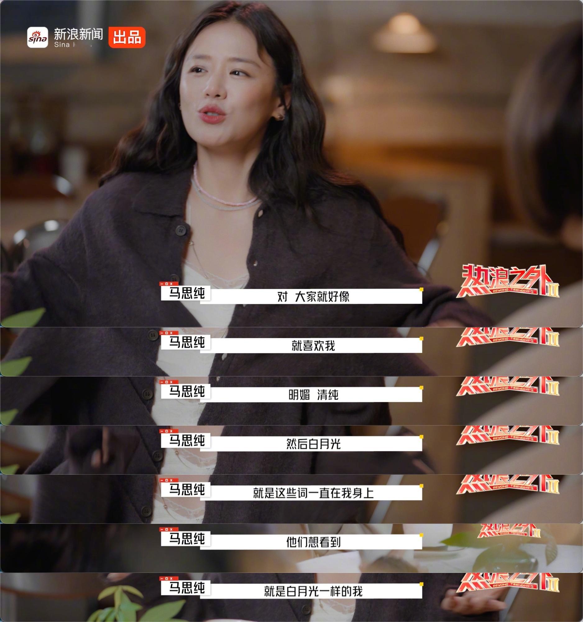 马思纯家人朋友全都反对上花少“你像我拍这么多戏,到现在大家还是最喜欢黎吧啦…”马思纯在《热浪之外》中坦言,观众总将她与“白月光”“青春洋溢”紧紧绑定,仿佛时间在她身上必须静止。她清醒回应:“我不可能永远都是白月光,因为我的确会变老。”演员渴望被看见的,不只是某一种模样,而是真实流动的生命状态。鲁豫也道出普遍心境:我们都爱年轻,但永远停留在低龄化,何尝不是另一种可怕?或许,敢于老去,才是对角色与人生最诚实的演绎。