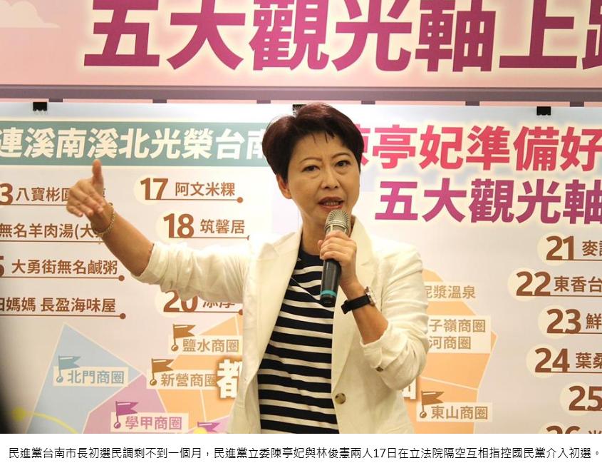 绿营台南市长初选陷乱战陈亭妃林俊宪互控蓝营介入初选林俊宪:你全靠蓝营介入撑民