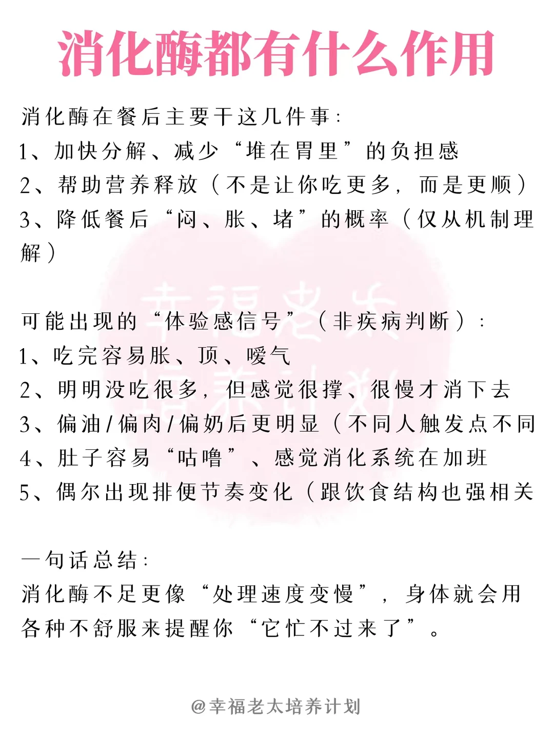 大家有没有经常饭后胃胀气,总感觉有气排不出去? 明没吃多少,肚子却胀得圆滚滚,还老咕噜咕噜响,隔一会儿就忍不住打嗝,那股气在胃里转来转去就是排不出去,坐也不是站也不是! 其实这大概率是肠胃消化在 “摆烂”!之前一直以为是吃太快、吃太撑,后来才知道,除了年龄增长、平时爱喝冰饮、吃重油重辣这些不良习惯,还有个关键原因 —— 身体里帮着消化的 “小帮手” 不够了,也就是消化酶! 一篇笔记跟大家说清楚:消化酶到底是怎么帮我们搞定食物、远离胀气的!