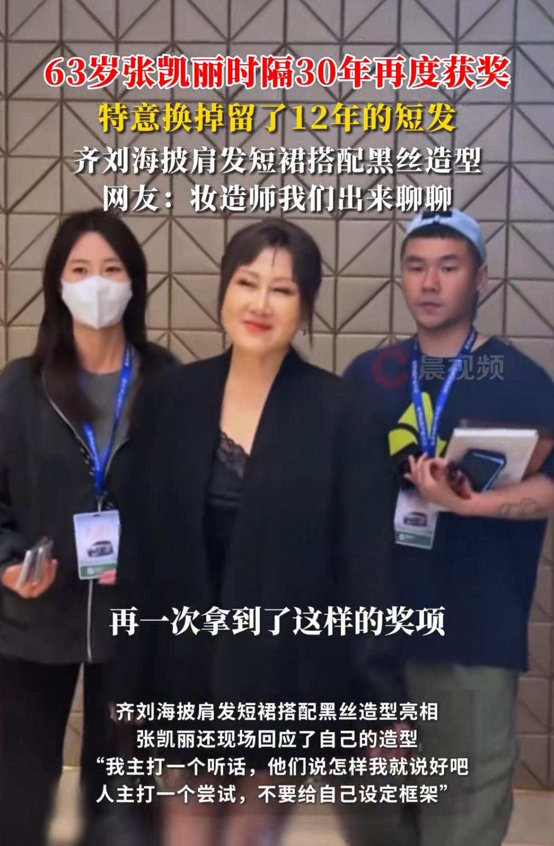 张凯丽时隔30年再度获奖 63岁张凯丽时隔,特意换掉留了12年的短发,齐刘海披肩