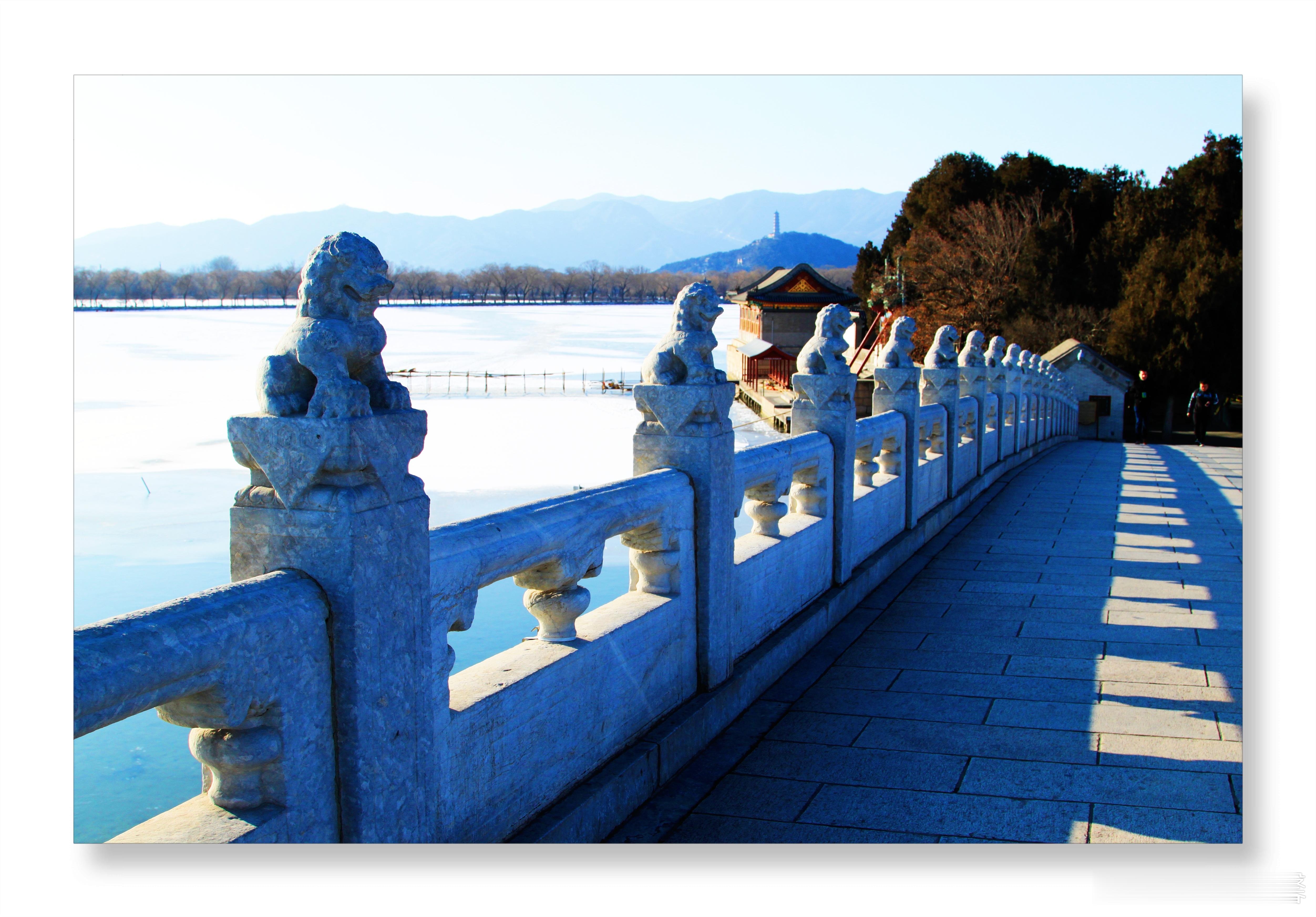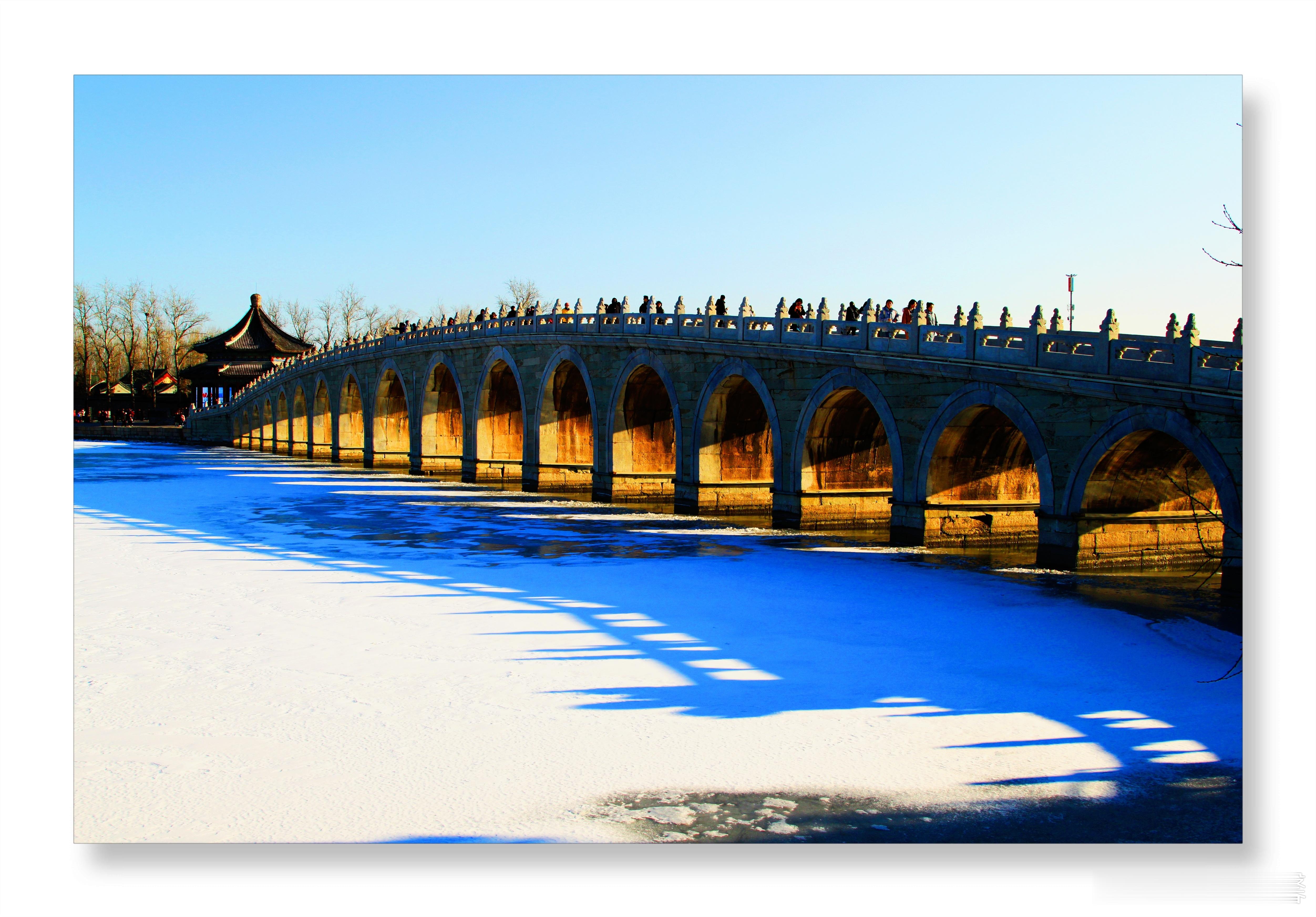 【颐和园冬韵】🌨️冬日的颐和园,是幅素净的水墨画。昆明湖结了冰,远看像块巨大的墨玉,嵌在群山与楼阁间。十七孔桥静卧其上,桥洞如圈,圈住了蓝天与残雪。知春亭,长廊,排云殿,石舫就像道具一样伫立在那里,让人心旷神怡,真美啊!摄影